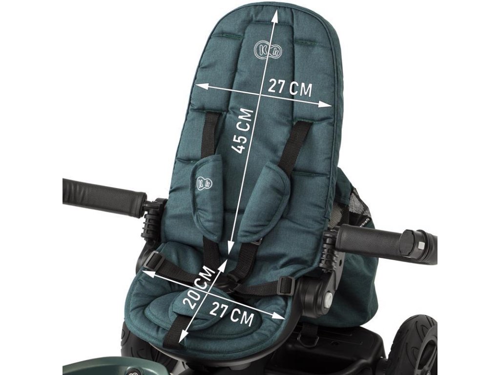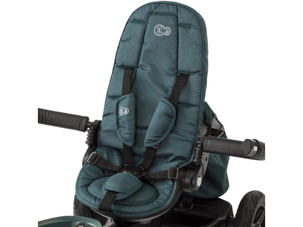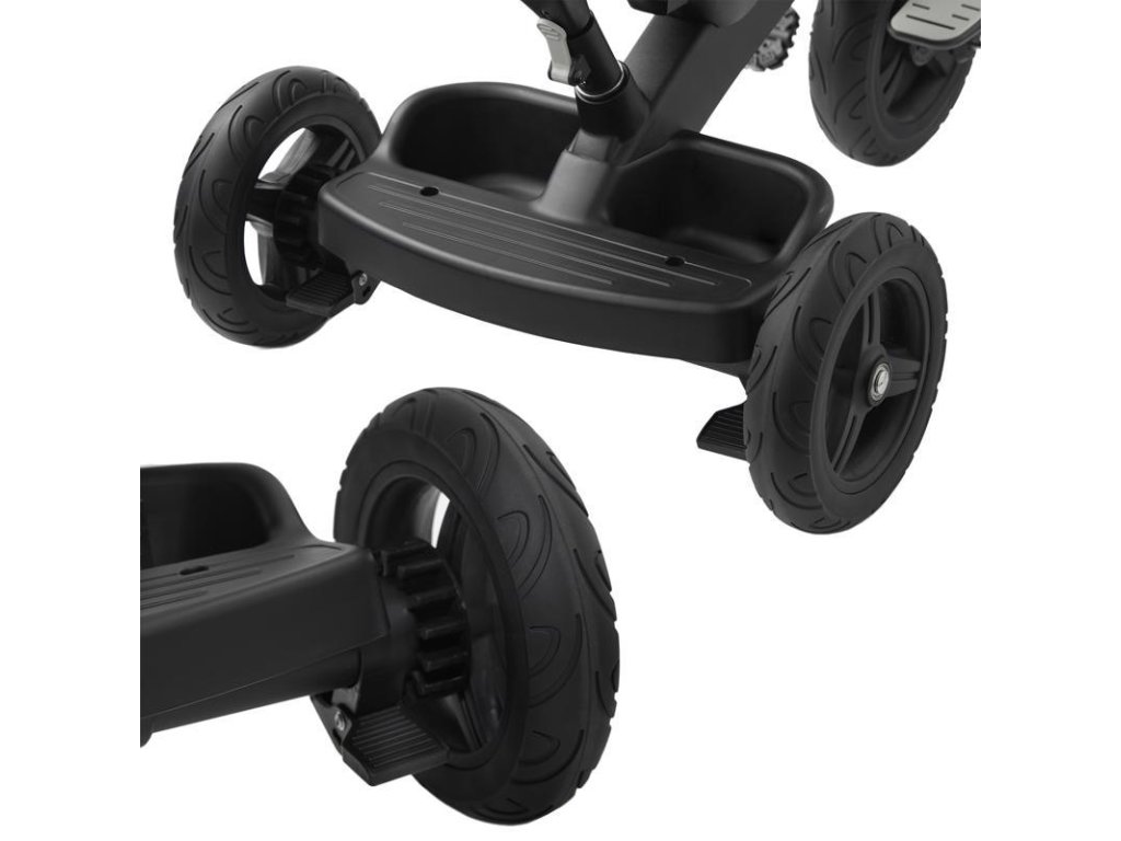 - kényelem minden helyzetben - a kerékpár ülése nemcsak forgatható, hanem magas háttámlával is rendelkezik, amely félig fekvő helyzetbe dönthető, ami tökéletes, ha a gyermek szundikál. Az öko-bőr huzattal bevont korlát kellemes tapintású, a lábtartó pedig kiválóan alkalmas arra, ha gyermeke pihenni szeretne a pedálozási kísérletek között.