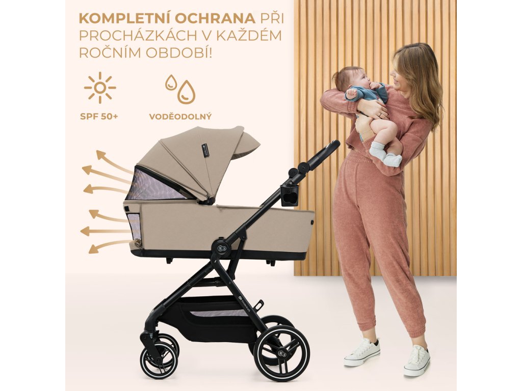 A sport babakocsi és a mózeskosár kupolái nagyok, szellőzéssel és UPF50+ szűrővel rendelkeznek. Vízállóak és kiegészítő szellőzőpanellel rendelkeznek, amely ideális a forró napokra.