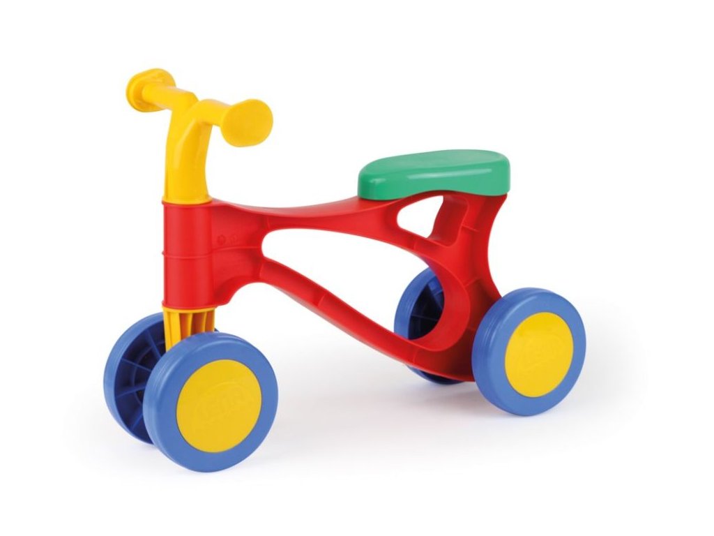 Színes futóbicikli 3 éves kor alatti gyermekeknek. Stabil, minőségi műanyag, nagyon biztonságos.