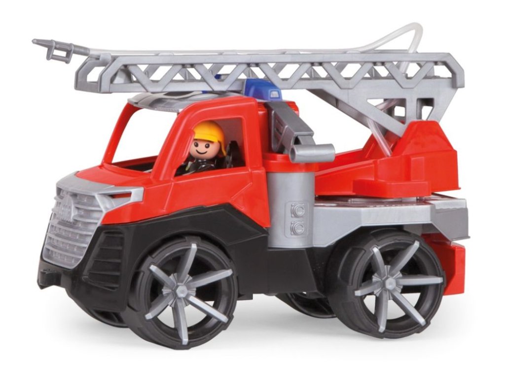 Truxx 2 tűzoltóautó kiváló minőségű műanyagból és nagyon masszív felépítéssel. Teljesen mechanikusan működőképes (vizet fecskendez). Tartalmaz reteszt a nem kívánt felborulás ellen, felnyitható kabint aktív figurával. Gumiabroncsok halkan futnak.