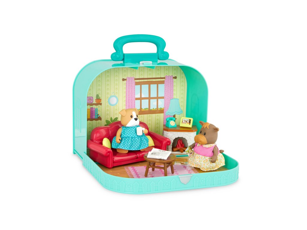 A Li'l Woodzeez játékkészlet praktikus bőröndben lehetővé teszi gyermekének, hogy kedvenc karaktereivel játsszon bárhol nyaraláskor, kirándulásokkor vagy a nagyszülőknél töltött hétvégén. A bőrönd kinyitás után egy gazdagon berendezett nappalivá alakul bútorokkal, kiegészítőkkel, valamint Ava bulldog és Eloise jávorszarvas figuráival.