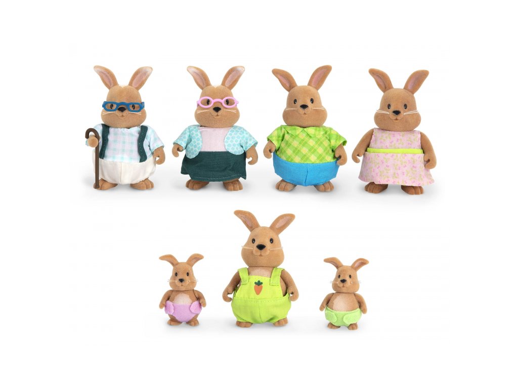 A készlet 7 nyúlfigurát tartalmaz. További állatfigurák, házak, üzletek, közlekedési eszközök stb. külön kaphatók. Minden Li'l Woodzeez figura és kiegészítő kompatibilis egymással, és lehetővé teszi, hogy eredeti kisvárost hozz létre a gyermeked fantáziájának és kreativitásának fejlesztésére.