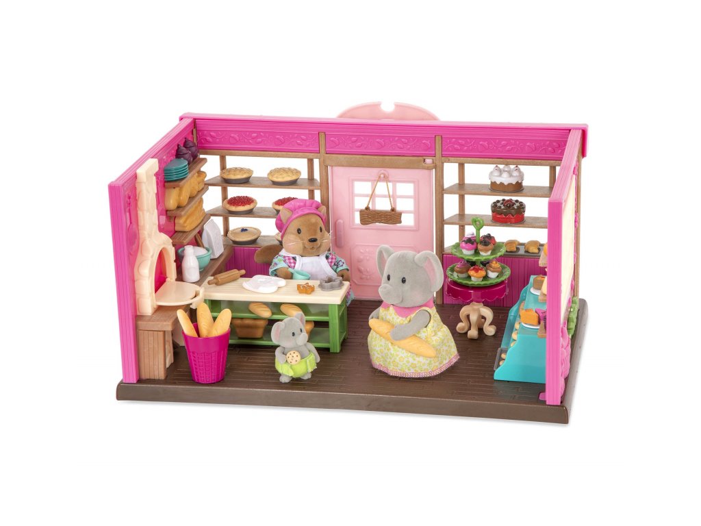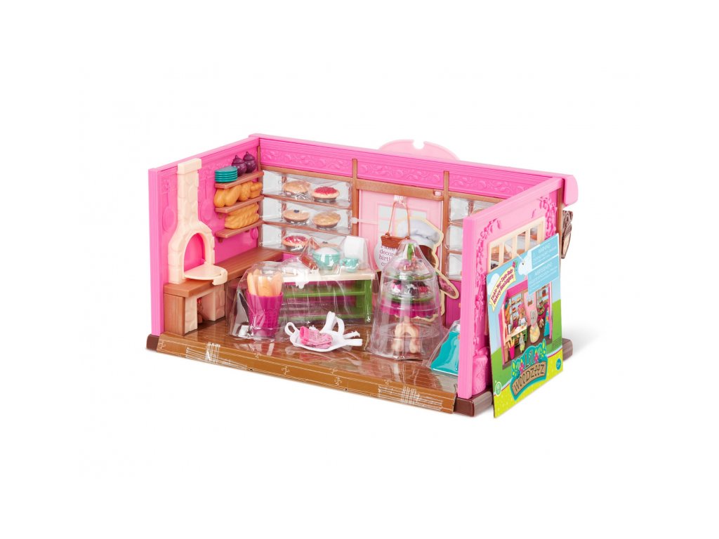 A pékség frissen sült kenyér, baguette és sütemények illatával vonzza Honeysuckle Hollow város lakóit minden nap. Válasszon egyet a külön megvásárolható Li'l Woodzeez állatfigurák közül, szerelje fel köténnyel és fogókesztyűvel, és máris elkezdheti sütni az új adag sütit!