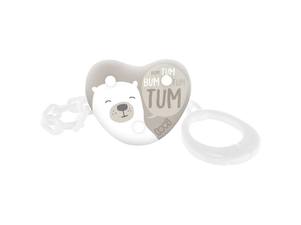 A LOVI cumiláncho praktikus csíptetővel van ellátva, amely lehetővé teszi a stabil és szilárd rögzítést a gyermek ruházatára. Megvédi a cumit a szennyeződéstől vagy az elvesztéstől.
