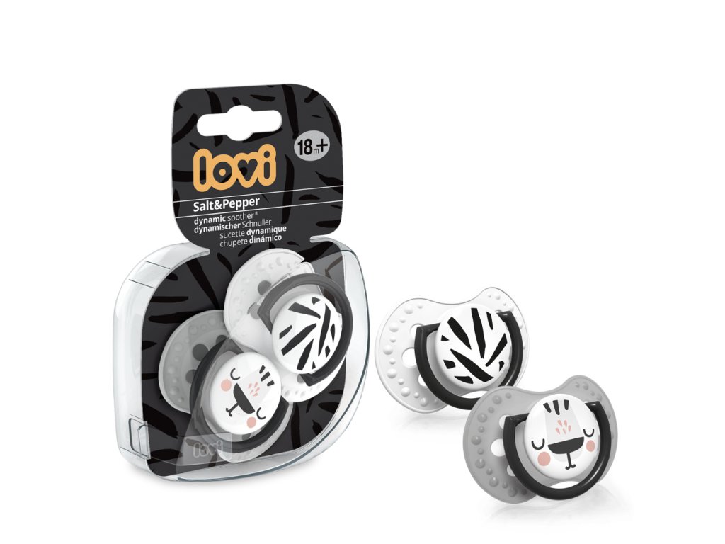 LOVI Dinamikus nyugtató cumi 18hó+ 2 db Salt & Pepper