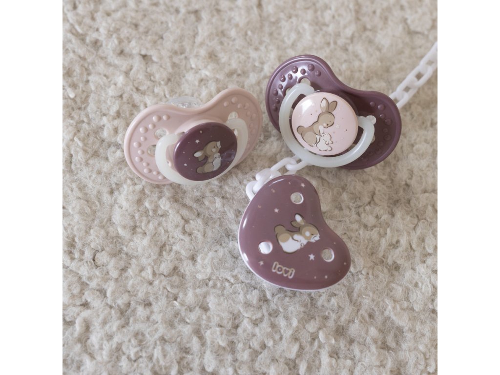 A LOVI® dinamikus cumikat neurológusokkal együttműködve fejlesztették ki. A szilikon egyenetlen rétegének egyedi kialakítása és az anyai mellbimbó által ihletett szimmetrikus forma. A frissítő, modern mintákat a sötétben világító fogantyú emeli ki.
