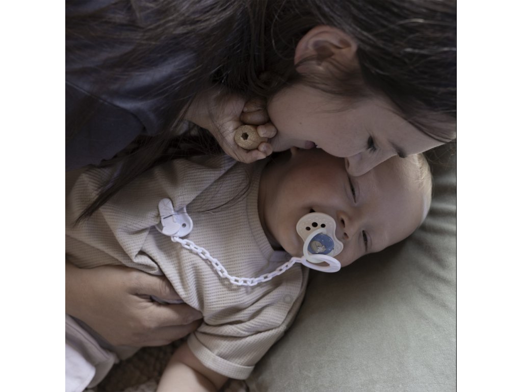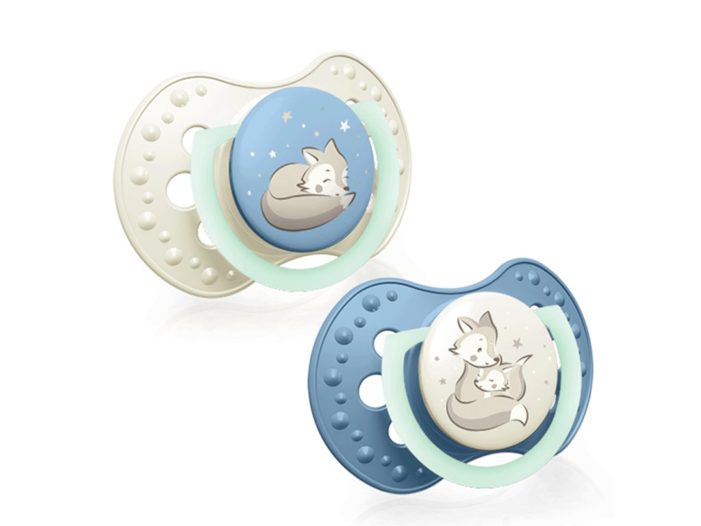 A LOVI® dinamikus cumikat neurológusokkal együttműködve fejlesztették ki. A szilikon egyenetlen rétegének egyedi kialakítása és az anyai mellbimbó által ihletett szimmetrikus forma. A frissítő, modern mintákat a sötétben világító fogantyú emeli ki.
