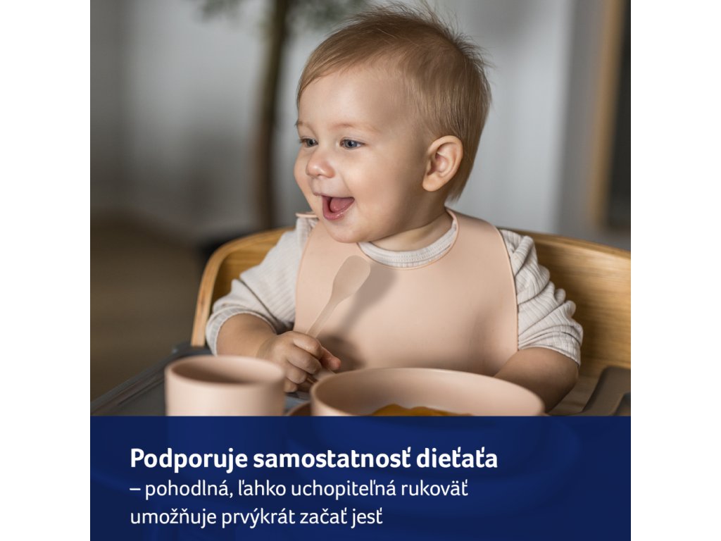 a kényelmes, könnyen megfogható fogantyú segíti a gyermeket az első önálló étkezésben