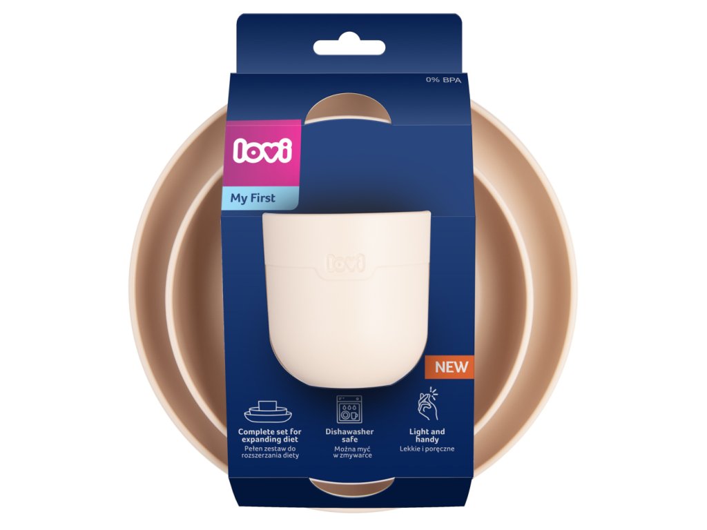 A LOVI étkészlet tartalmaz egy tálat, egy tányért és egy bögrét. Minden, ami a baba étrendjének bővítéséhez szükséges. A LOVI étkészlet ideális termék a gyermek önálló étkezéséhez – a tál és a tányér különféle ételekhez alkalmas, a bögre pedig nagyszerű segédeszköz a nyitott bögréből való ivás megtanulásához.