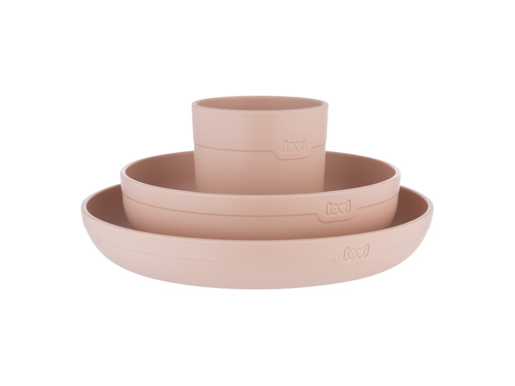 A LOVI étkészlet ideális termék a gyermek önálló étkezéséhez – tál, tányér és bögre. Könnyű és praktikus étkészlet melamin és BPA nélkül.