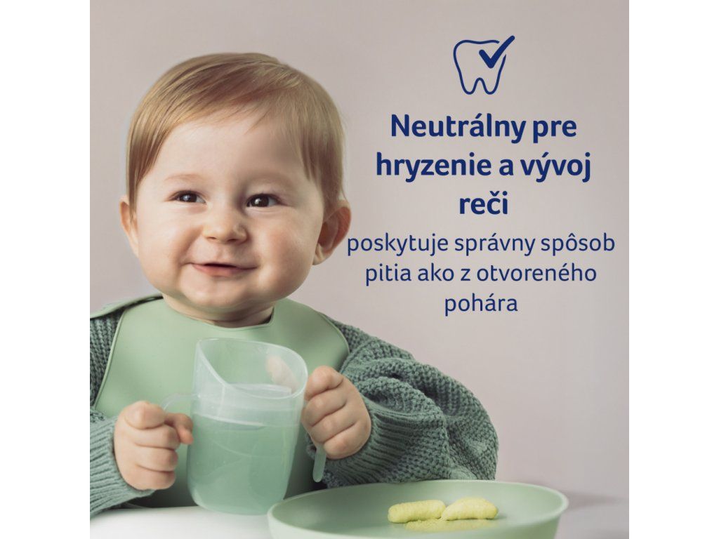 Semleges a harapásra és a beszédfejlődésre – biztosítja a helyes ivási módot, mintha a gyermek nyitott pohárból inna.