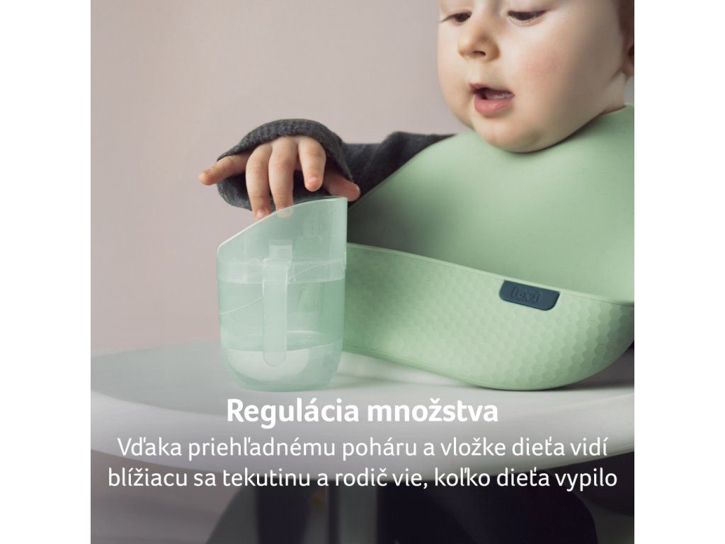 Lehetővé teszi a folyadék mennyiségének ellenőrzését – a pohár és a betét átlátszó falainak köszönhetően a gyermek látja a folyadékot, a szülő pedig tudja, mennyit ivott a gyermek.