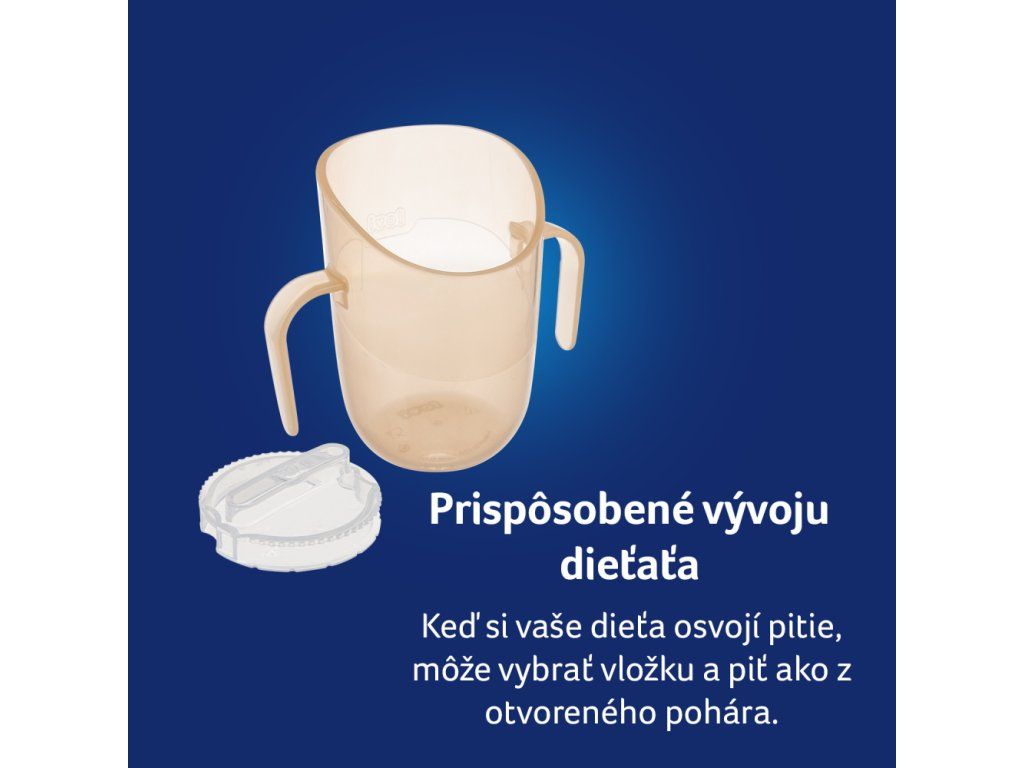 A gyermek fejlődéséhez igazítva – amint a gyermek megtanul önállóan inni a pohárból, a betét eltávolítható, és a gyermek már nyitott pohárból ihat.