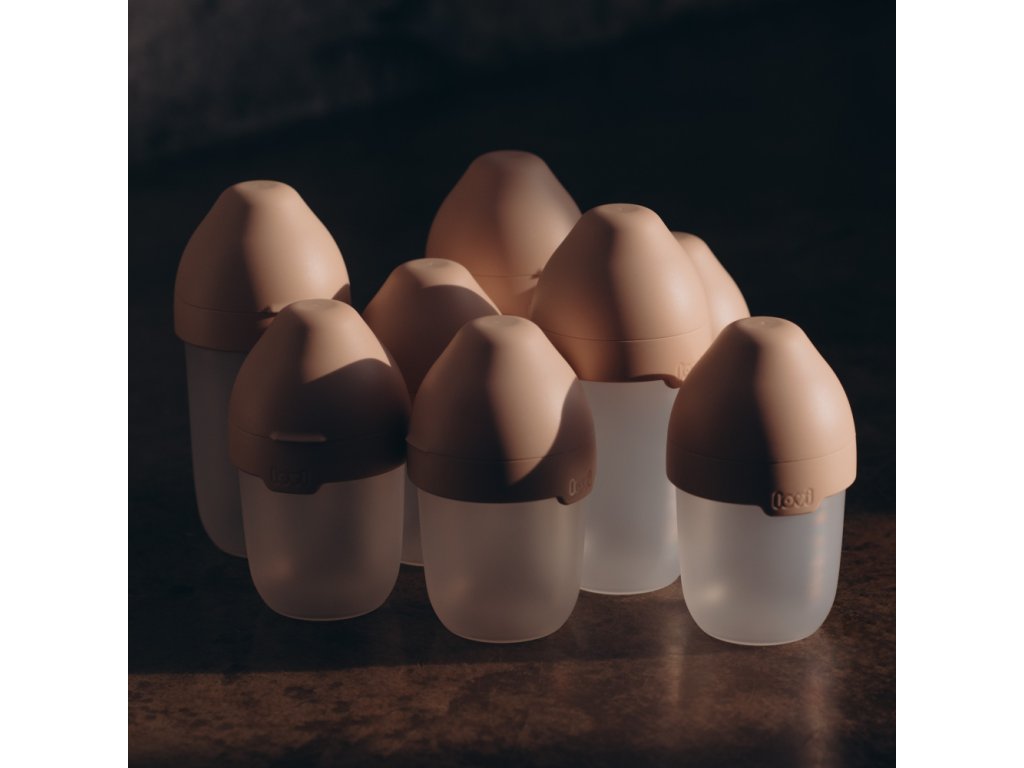 • Természetesség és rugalmasság, finom gyűrű a cumisüvegen a mellbimbó udvarának színében.