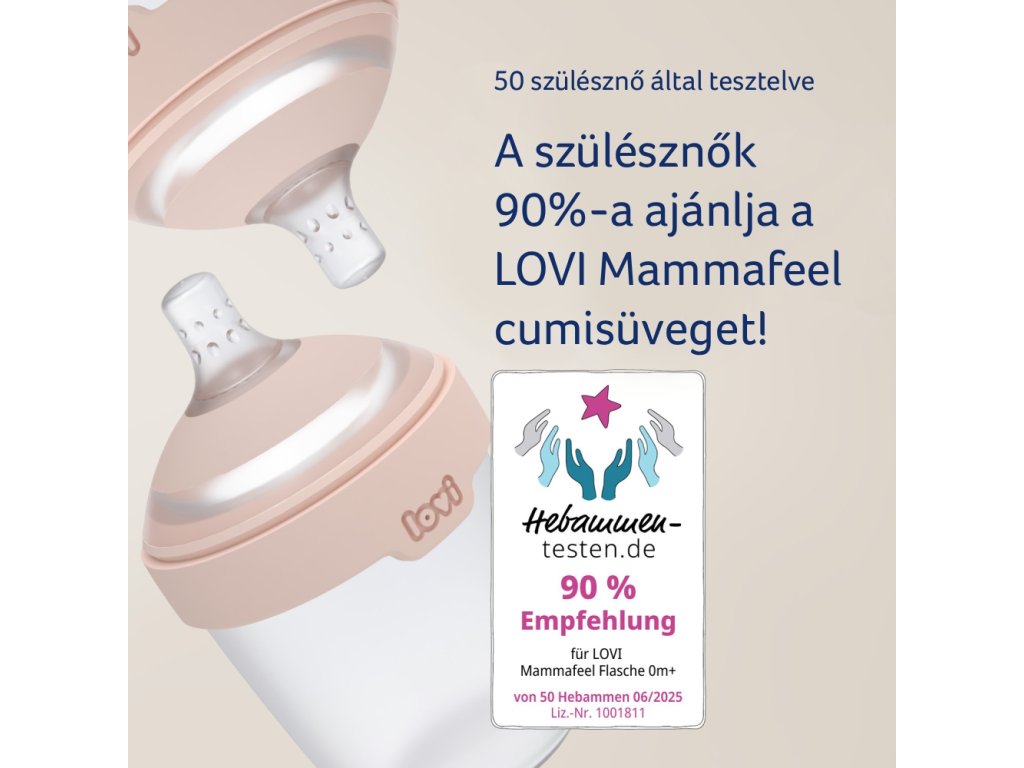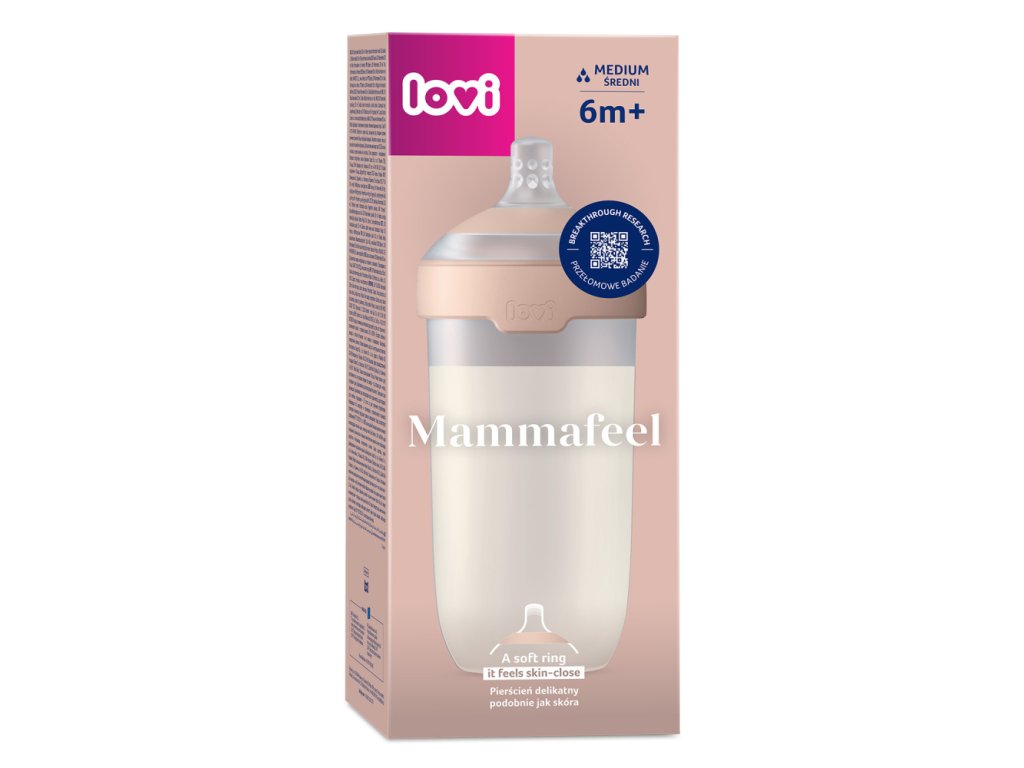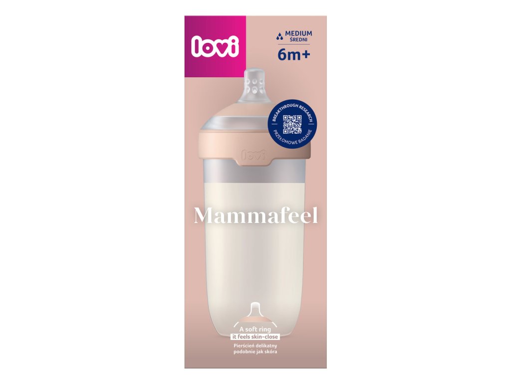 Az innovatív Mammafeel cumisüveg a lehető legjobban hasonlít az anya mellére színében, formájában, hőjében és dinamikájában. A dinamikus cumisüveg lehetővé teszi a természetes ritmusú szopást, és nem zavarja a szopási reflexet. A palack mérete 330 ml, a cumisüveg áramlása 6m+ KÖZEPES.