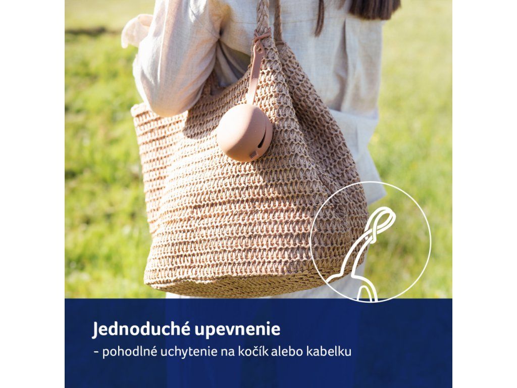 A tok rugalmas fogantyúja könnyen rögzíthető a táskára vagy a babakocsira, a speciálisan kialakított oldalsó nyílás pedig lehetővé teszi a cumi behelyezését és kivételét a tok leválasztása nélkül.