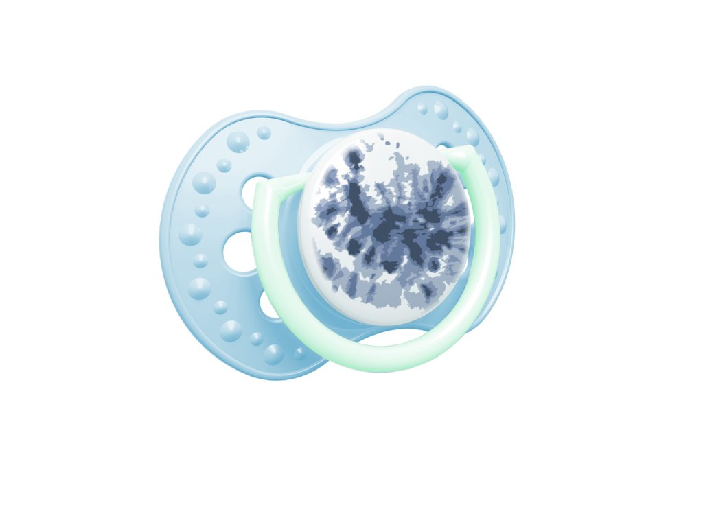 A dinamikus szilikon LOVI TIE DYE cumi nem zavarja a baba szopási reflexét, nagyon könnyű, és a baba nem fárad el szopás közben. Kényelmes, sötétben világító fogantyú.