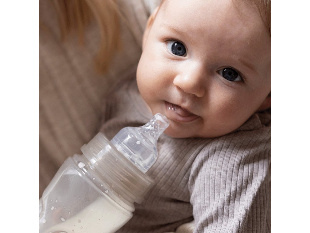 A cumisüveg dinamikus csúcsa vékony szilikonrétegből készül, és dinamikusan alkalmazkodik a baba szívásához (meghosszabbodik). Serkenti az állkapocs izmainak aktív működését. A tej nem folyik ki, a babának aktívan szívnia kell.