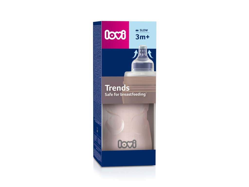 LOVI Trends cumisüveg az anyatejjel táplált csecsemők etetésére. Biztonságos a szoptatott csecsemő számára, nem zavarja a szopási reflexet és nem zavarja a természetes táplálást. Egyedülálló etetőcumival® van felszerelve, amely vékony, kiálló véggel, kemény, profilozott alappal és SUPERvent légelvezető rendszerrel rendelkezik. A cumisüveg kompatibilis az összes LOVI mellszívóval. A LOVI Trends cumisüvege finom mintázattal van ellátva, a legújabb trendeknek megfelelően.