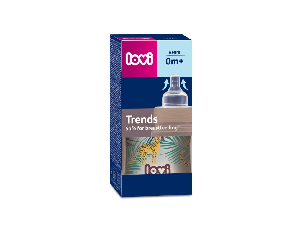 LOVI Trends cumisüveg az anyatejjel táplált csecsemők etetésére. Biztonságos a szoptatott csecsemő számára, nem zavarja a szopási reflexet és nem zavarja a természetes táplálást. Egyedülálló etetőcumival® van felszerelve, amely vékony, kiálló véggel, kemény, profilozott alappal és SUPERvent légelvezető rendszerrel rendelkezik. A cumisüveg kompatibilis az összes LOVI mellszívóval. A LOVI Trends cumisüvege finom mintázattal van ellátva, a legújabb trendeknek megfelelően.