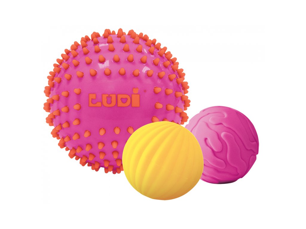 Puha labdák különböző felületekkel és kiemelkedésekkel a pihenéshez és a játékhoz gyermekével. A labdák ideálisak a gyengéd és kellemes masszázshoz. A labda kézben tartása vagy mezítláb történő taposása serkenti a gyermek érzékszerveinek fejlődését és segíti az egyensúly fejlődését, ami fontos a gyermek első lépéseihez. A labda dobása, gurítása és elkapása szintén segíti a gyermek motoros készségeinek és koordinációjának fejlődését.