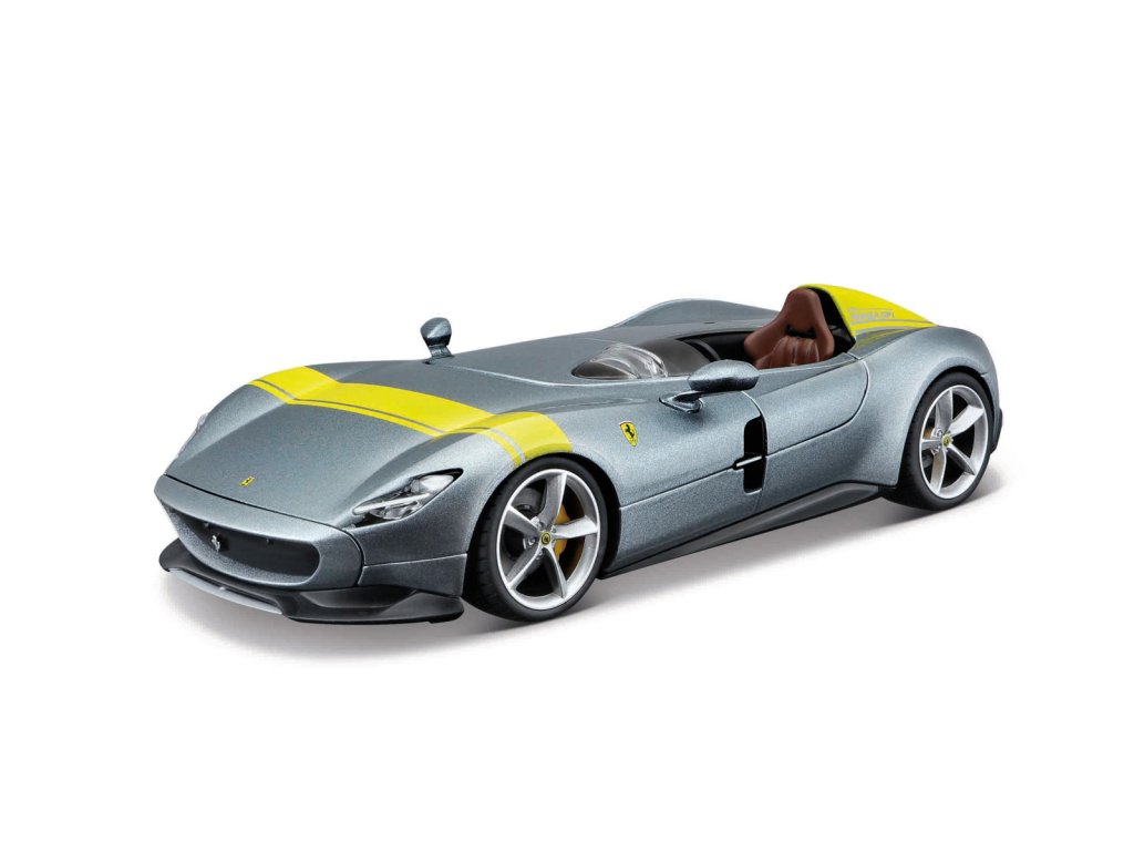 Ferrari szerelősor, Ferrari Monza SP1, ezüst,. A Monza SP1 modellek az 50-es évek maranellói autógyár klasszikus speedsterei által inspiráltak. A motorháztető alatt azonban a legerősebb erőforrások találhatók, amelyeket Maranello valaha is gyártott közúton használható járművek számára! 0-100 km/h mindössze 2,9 másodperc. A maximális sebesség állítólag meghaladja a 300 km/h-t. Az autómodell összeszerelése a játékkészlethez mellékelt képes útmutató szerint történik. Az egyes részek ragasztó nélkül, nyomással illeszkednek egymáshoz. A fém alkatrészeket nem mérgező festékekkel festették. Nem szükséges őket tovább festeni. A játékkészlet tartalmaz egy csavarhúzót. Három év alatti gyermekek számára nem alkalmas. Dobozba csomagolva. Életkor: 8+