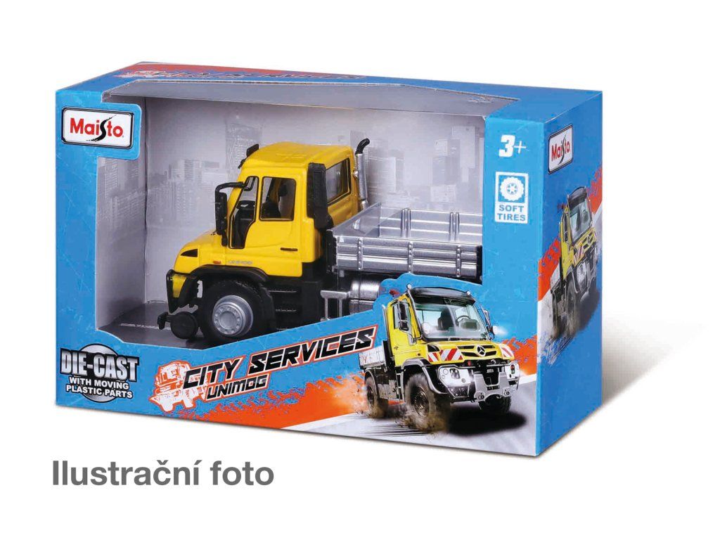 Unimog Városi Szerviz. Unimog munkagépek fém modelljei műanyag kiegészítőkkel - mozgatható részek. Elérhető változatok: Építőipari teherautó, Kétfunkciós vasúti szállító, Úttisztító jármű, Billenőplatós teherautó. Dobozba csomagolva. 3 éves kor alatti gyermekek számára nem alkalmas. A készlet a modellek véletlenszerű keveréke. A választás nem befolyásolható. Életkor: 3+
