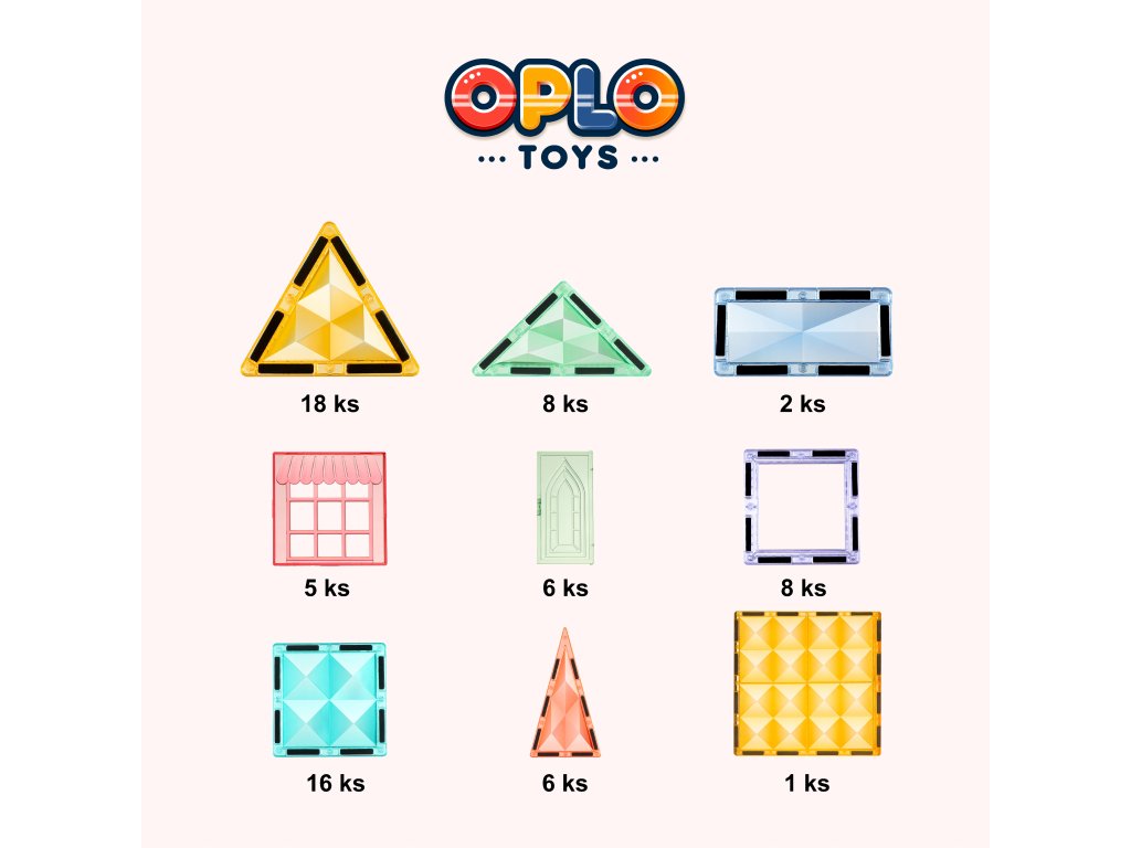 Mágneses építőkocka Oplo Toys - Starshine 70 db