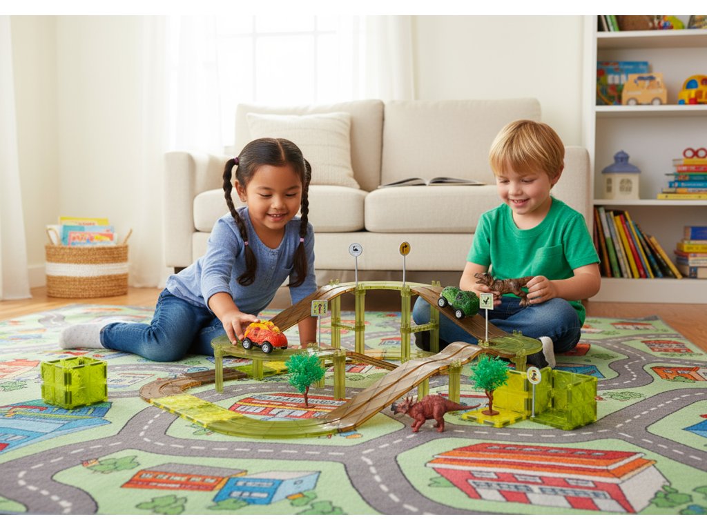 Mágneses versenypálya Oplo Toys - DINO 80 db