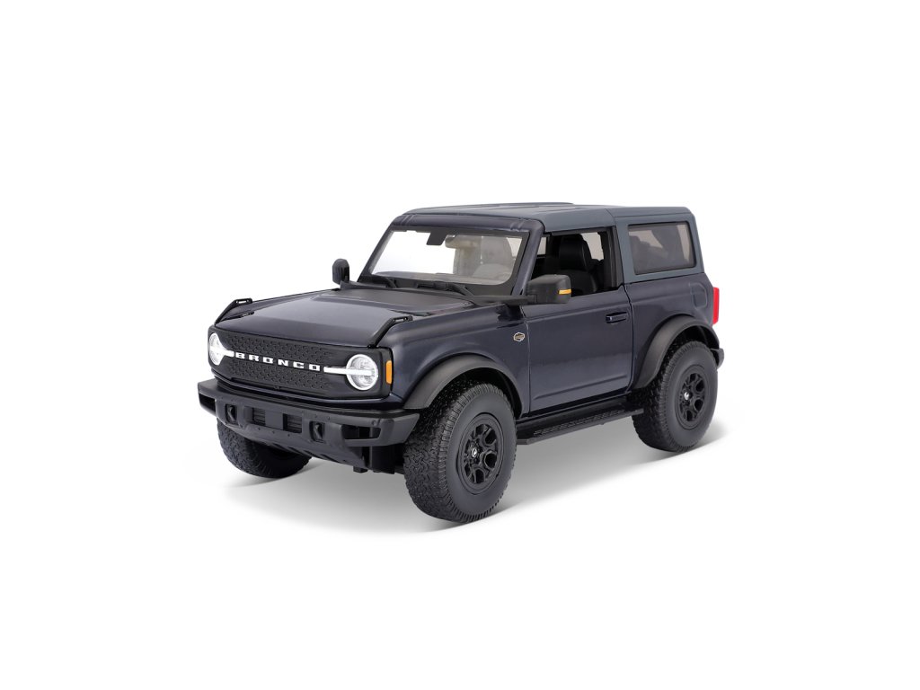 2021 Ford Bronco Wildtrak. A kiválóan kidolgozott modell meglepetést okoz a belső és külső részletek kidolgozottságával. A modell ajtaja, motorházteteje és csomagtartója nyitható. Dobozba csomagolva. Csomagolási méretek: 33x12,4x16,4cm. Életkor: 3+