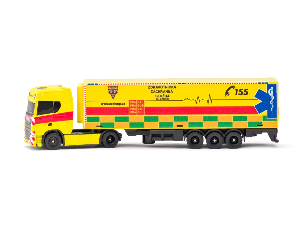 Maisto - CZ - Mini munkagépek, Scania 770S GOLEM EMS konténeres félpótkocsi, Csehország, 1:64