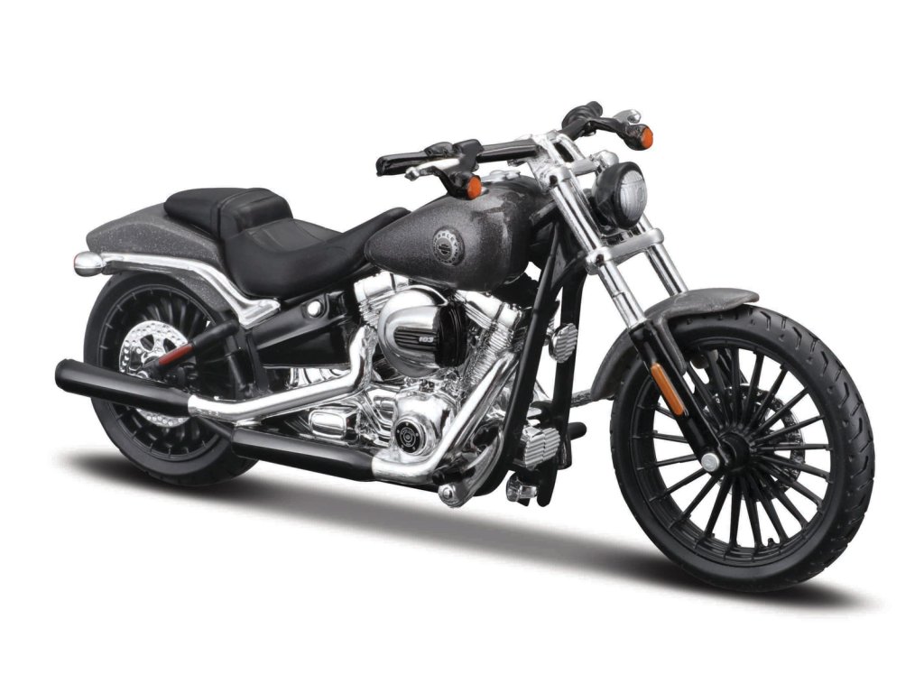 2016 Breakout®. A 2016-os Harley-Davidson Breakout azoknak készült, akik szeretik a hosszú és alacsony motorokat. A 2016-os évre a High Output Twin Cam 103B motor barátságos rezgéseket biztosít minden sebességnél, valamint elegendő teljesítményt. Minőségi alkatrészekből készült, részletgazdag kidolgozással. Forgatható kormány és rugózott hátsó kerék. Méretek: 17,8x10,2x7cm. Életkor: 3+