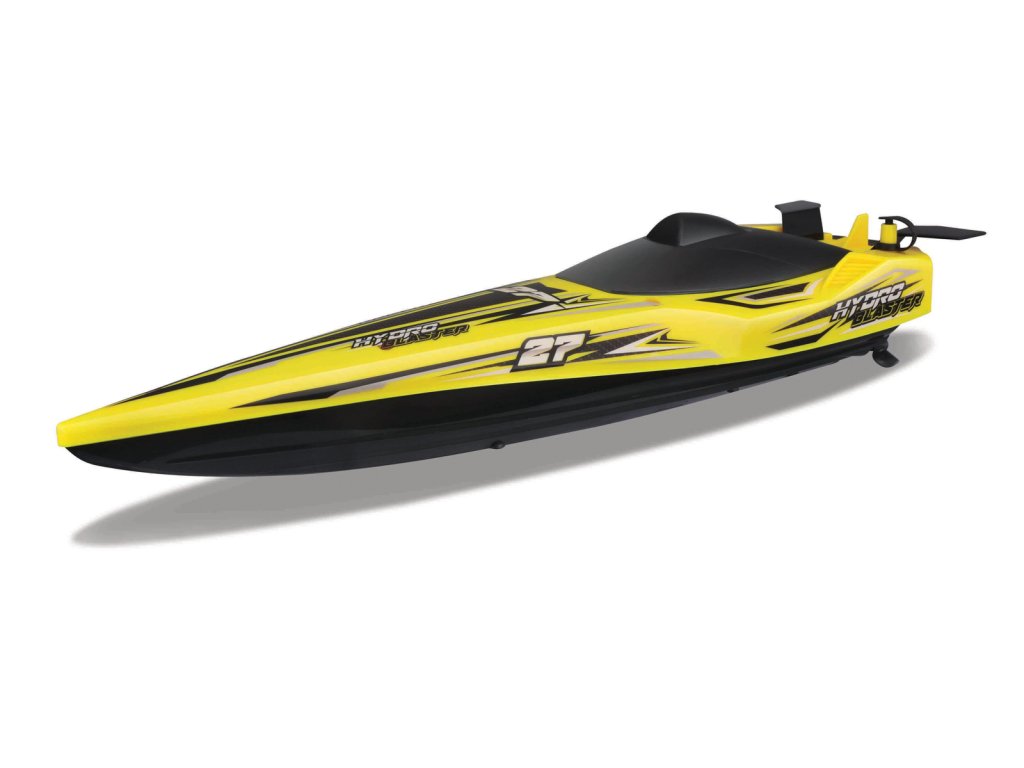 Hydro Blaster R/C csónak, sárga. A Maisto márkájú távirányítású versenycsónak modellje. A csónak működéséhez 4xAA elem szükséges (nem tartozék). A távirányító 2x AAA elemmel működik (nem tartozék). Csomagolás: 43,2x12,1x12,1cm. Életkor: 8+