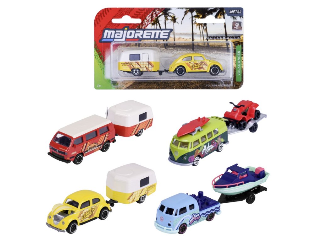 Majorette kisautó utánfutóval VW The Originals Trailer, 4 féle