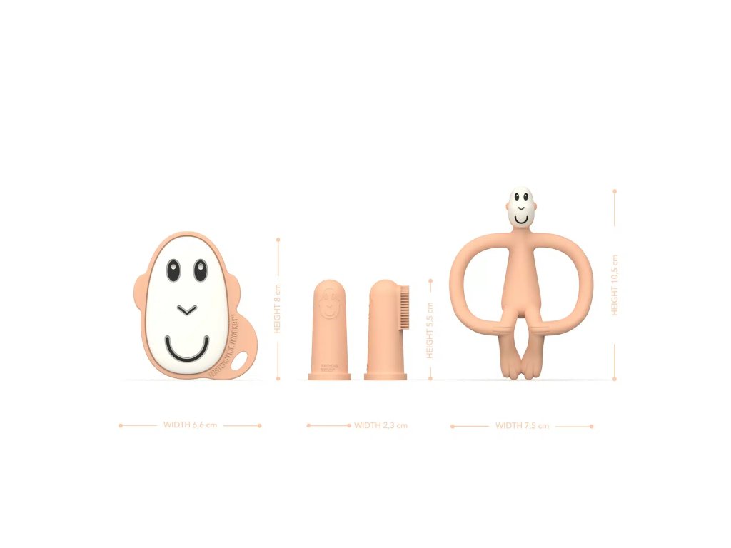 A barack alakú fogzselé vicces, rugalmas, és a texturált kiemelkedéseknek köszönhetően gyorsan enyhíti a fájdalom helyét. A lapos majombarátok kicsik, könnyűek és tökéletesek kisgyermekek kezébe – nagyszerűek utazáshoz vagy táskában. A szilikon ujjkefék ideálisak első fogkefék egy babának – gyengédek és kíméletesek az ínyhez.