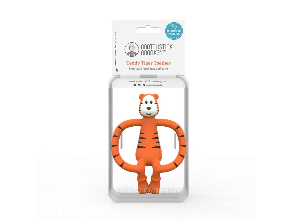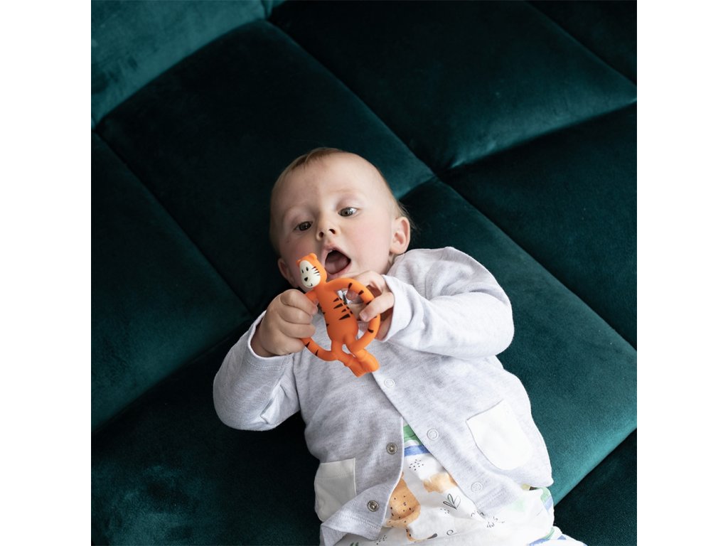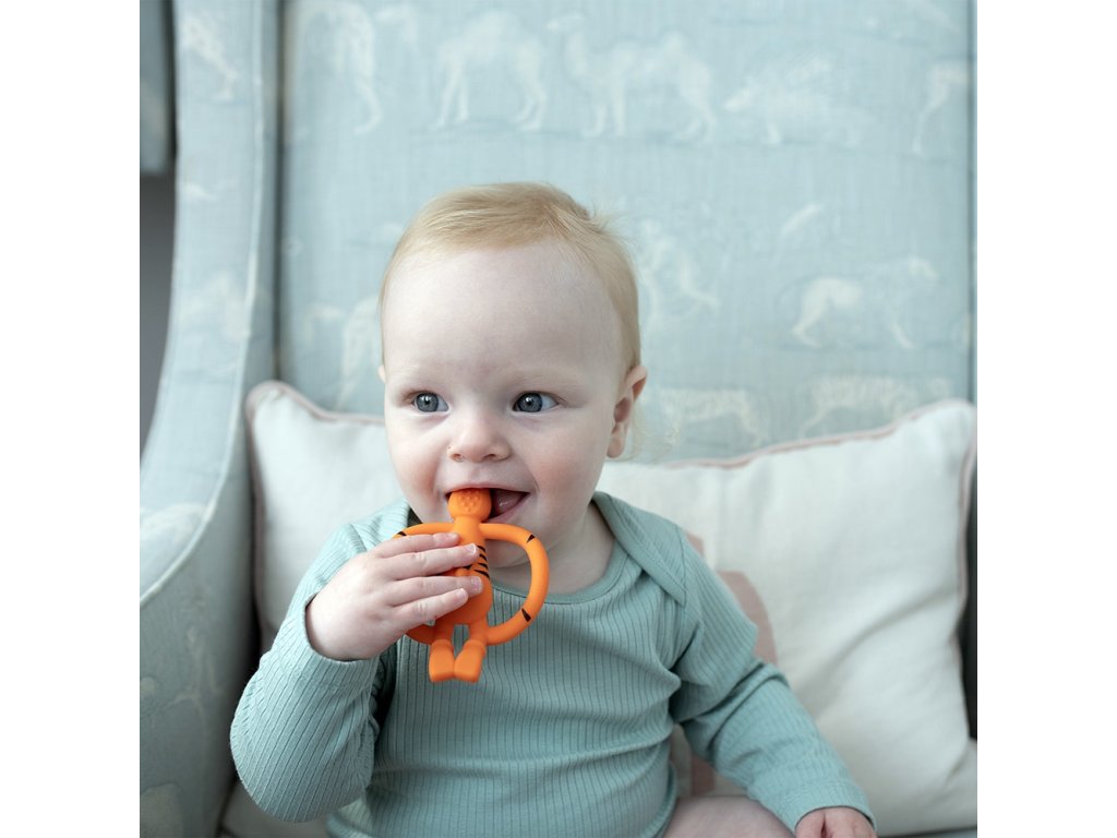 Egyedi, puha, finoman texturált rágóka BioCote® antimikrobiális technológiával, amely jelentősen segíti a maximális higiéniai tisztaság fenntartását.