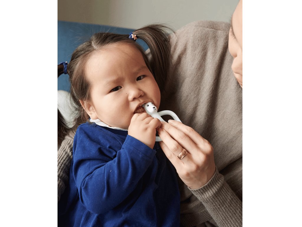 - Kiváló segédeszköz az íny masszírozásához és edzőkefeként az első fogak tisztításához.