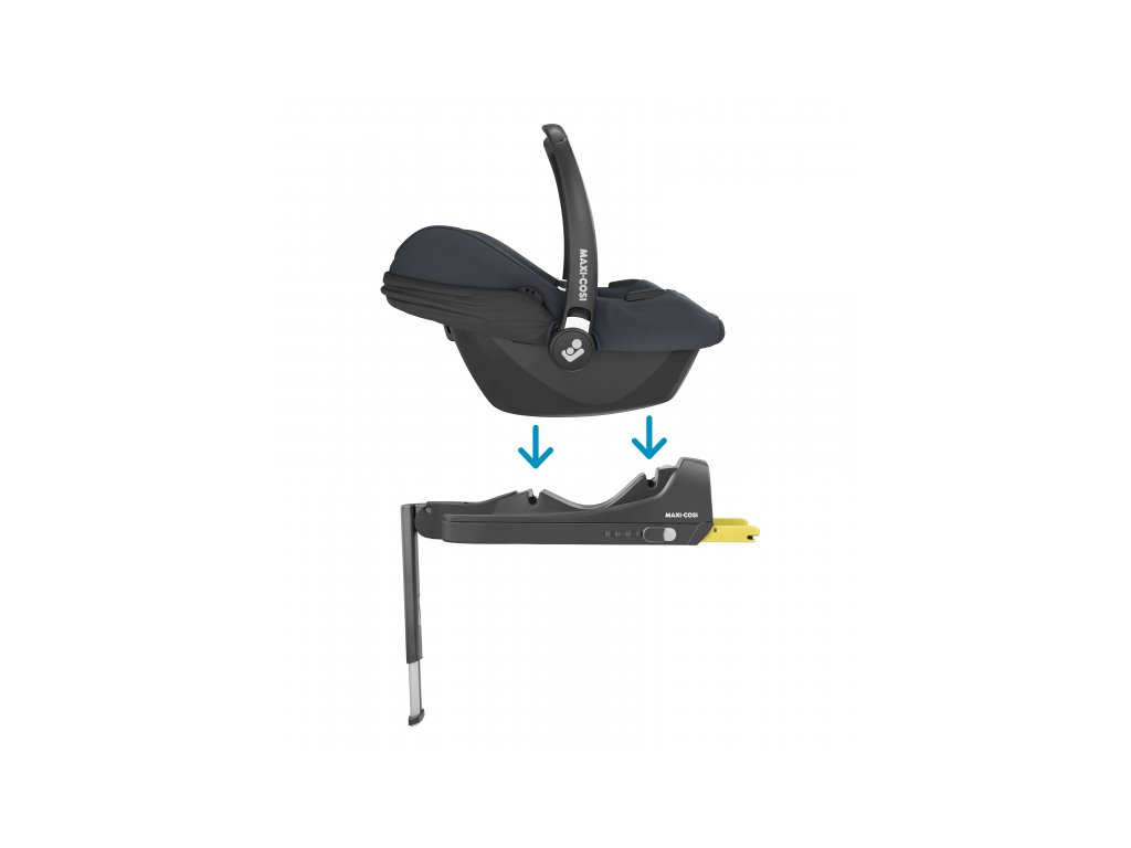 A Cabriofix i-Size bázis az ISOFIX rögzítőelemek segítségével rögzíthető az autóban. A bázison található vizuális jelző minimalizálja az autósülés helytelen rögzítésének valószínűségét. Az autóülés a Click-and-Go technológiának köszönhetően könnyen és gyorsan rögzíthető a bázistalphoz.