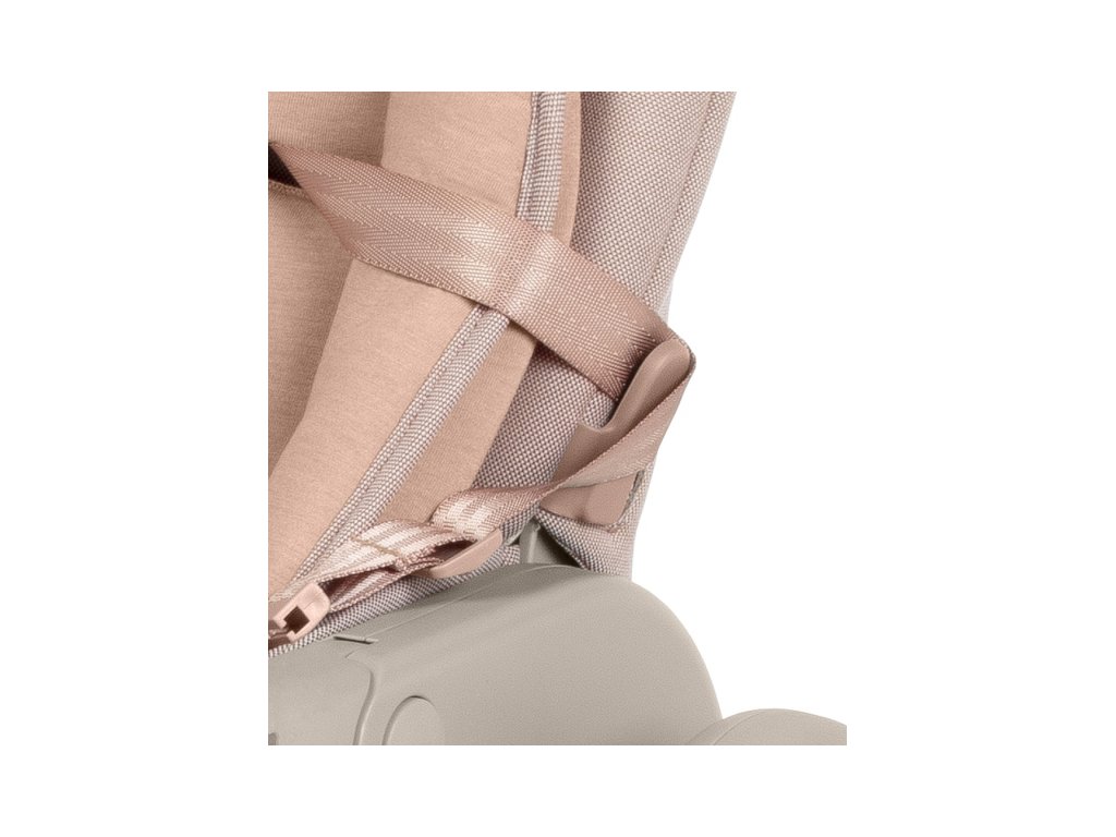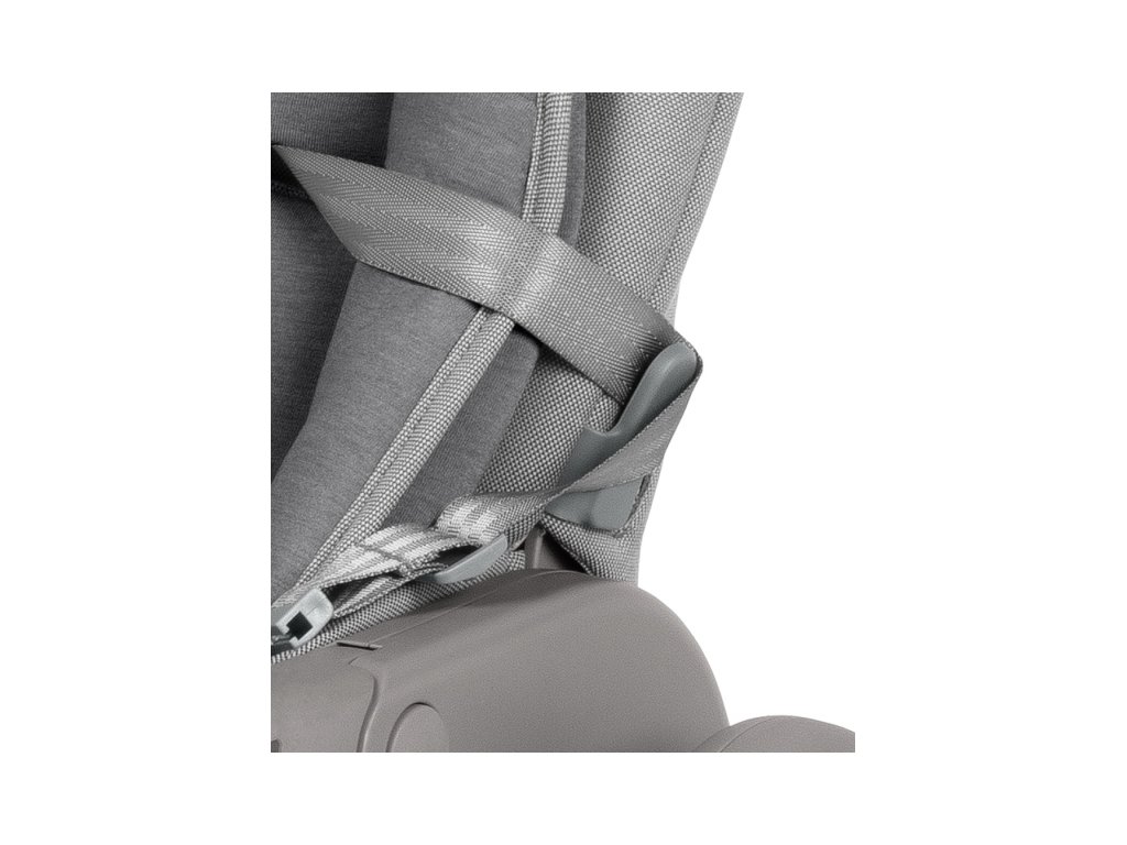 A gyermek életkorától függően a gyermeket a székben állítható 5 pontos vagy 3 pontos biztonsági öv rögzíti. A hevederek nem akadályozzák a gyermek elhelyezését a fogantyúknak köszönhetően, amelyek nyitva tartják a hevedereket.