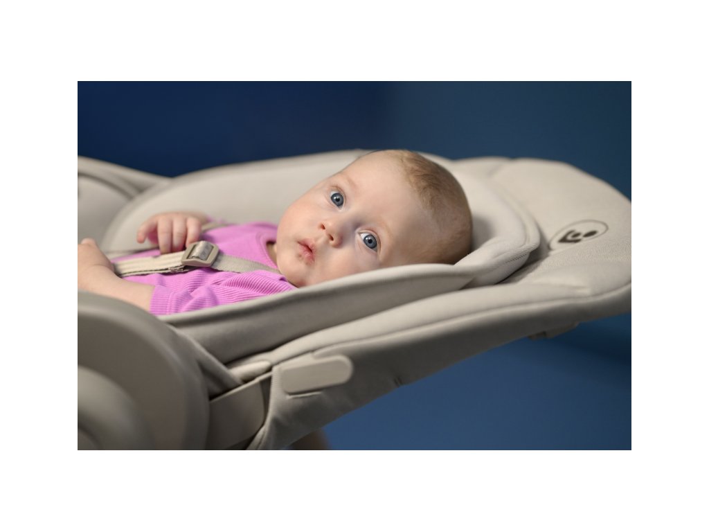 A multifunkcionális etetőszéket használhatja babahintaként, magas etetőszékként pulttal vagy anélkül, székként az asztalhoz, ülésmagasítóként a klasszikus széken és ülő székként idősebb gyermekek számára.A kivehető kényelmes újszülött betét garantálja a kényelmet a babák számára születésüktől fogva.
