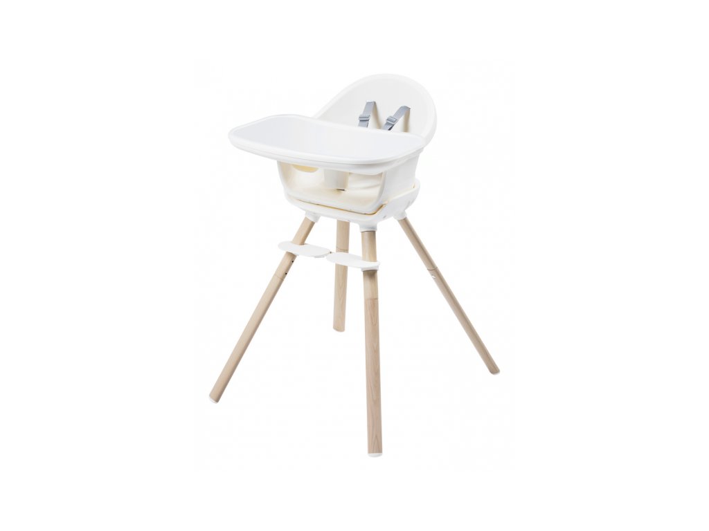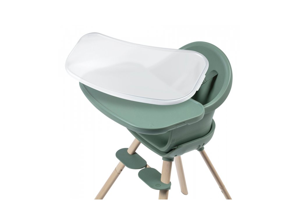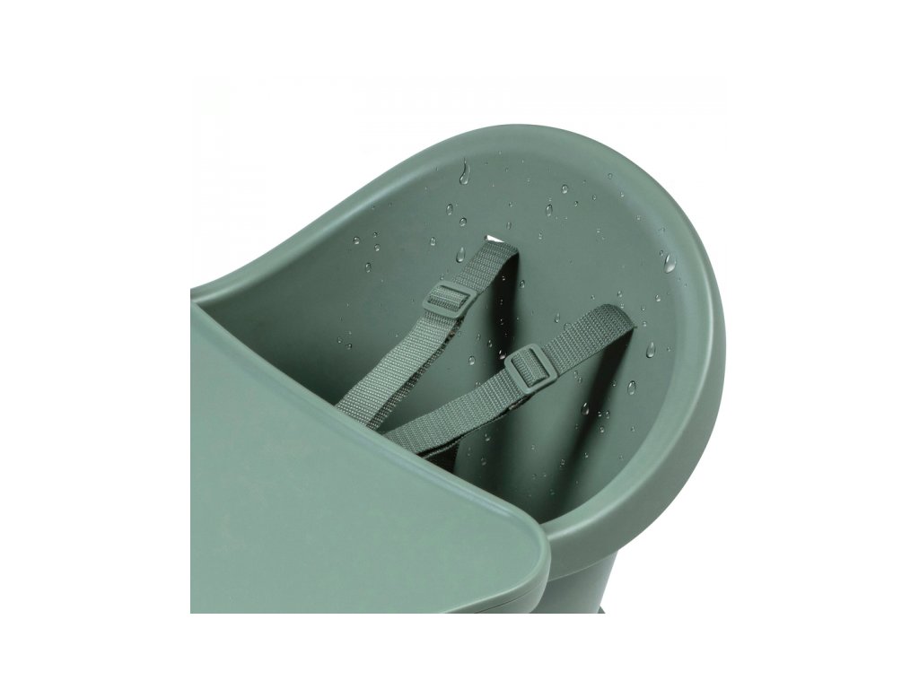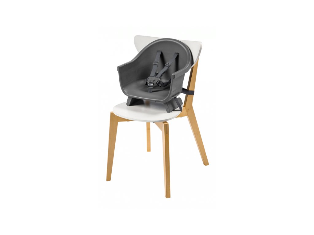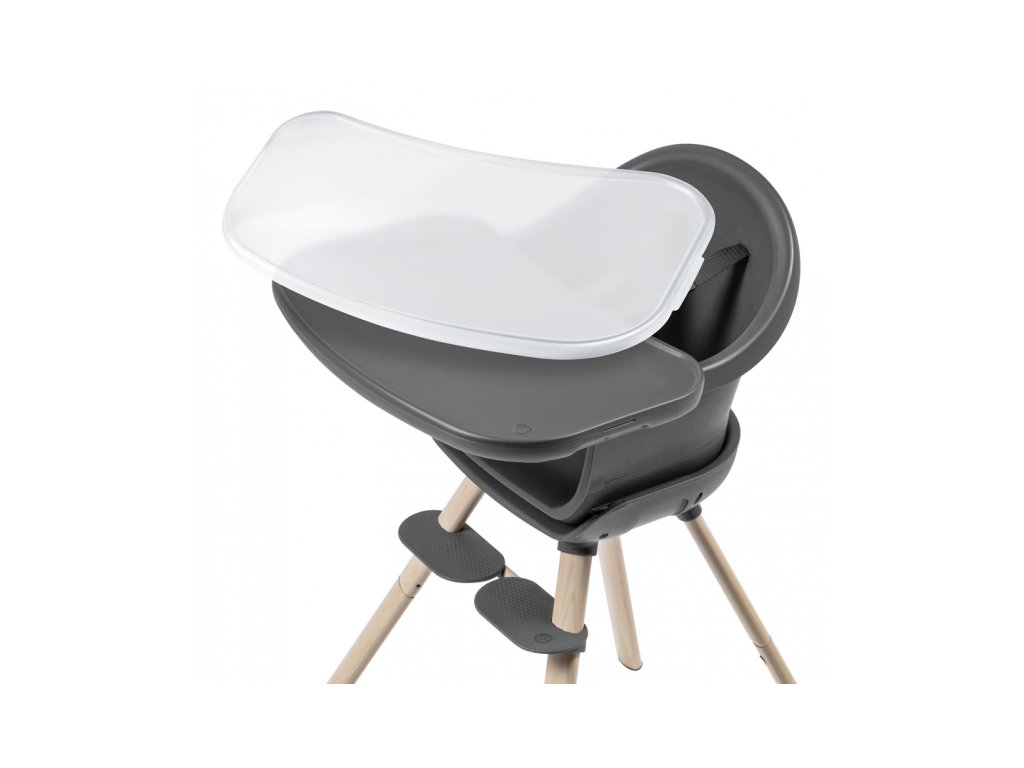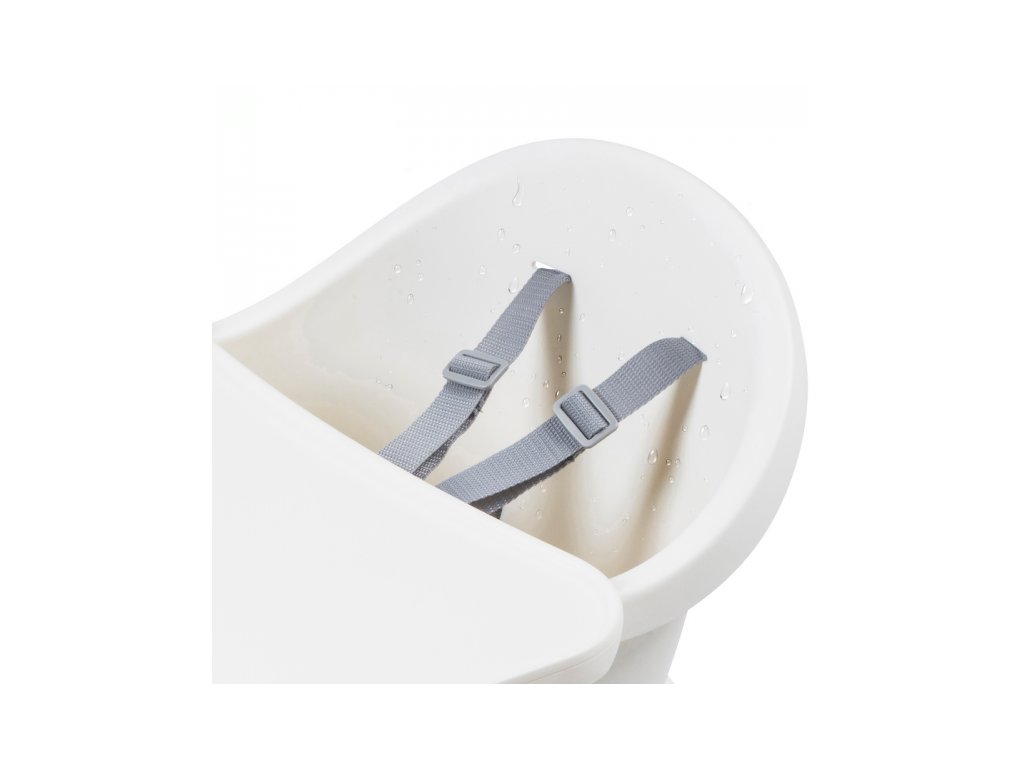 A kényelmes és biztonságos ülést a gyermek számára az állítható lábtartó és a biztonsági 5 pontos övek biztosítják. A szék szennyeződés esetén könnyen letörölhető. Az étkezőpultra helyezett levehető betét mosogatógépben mosható.
