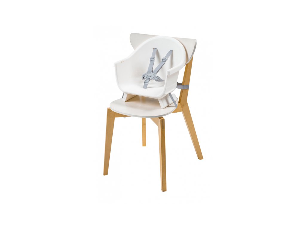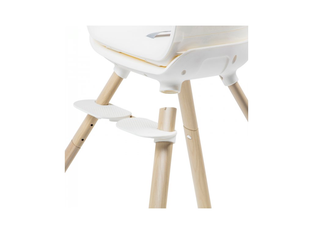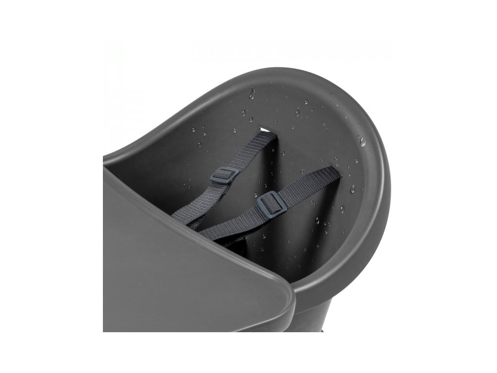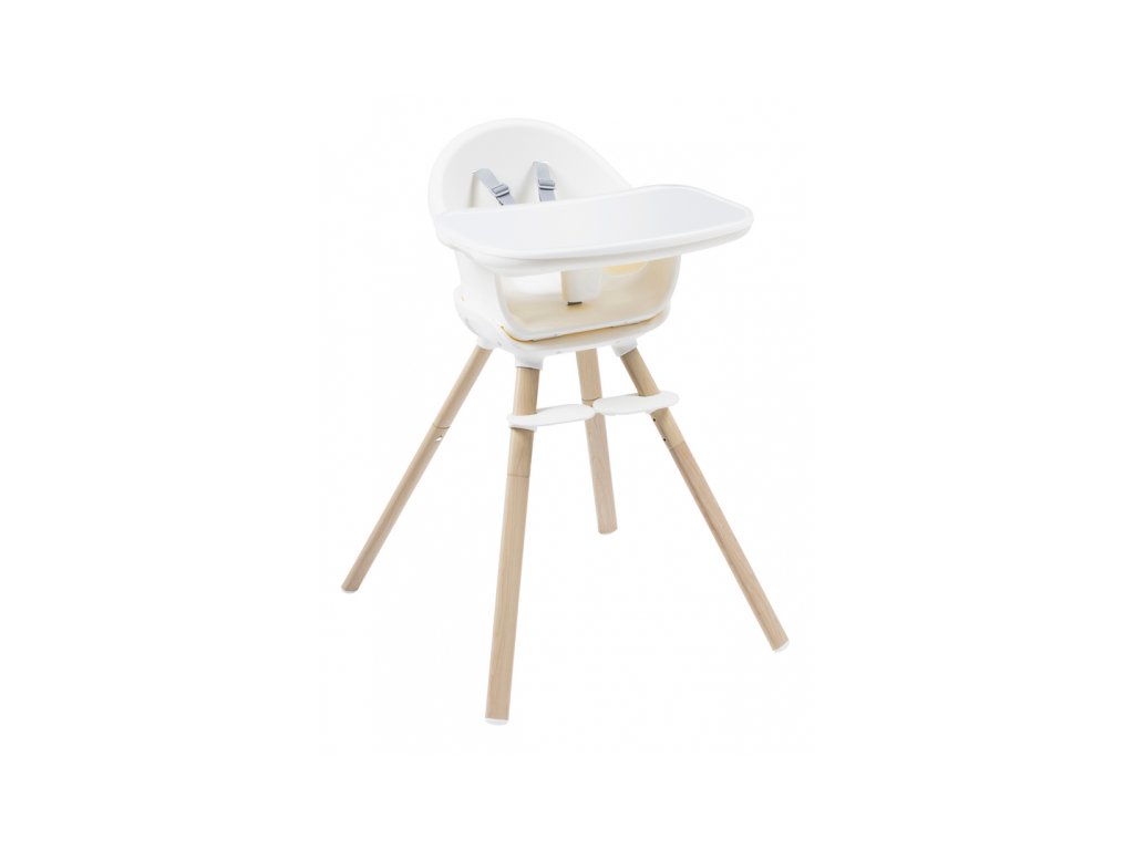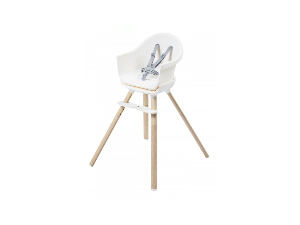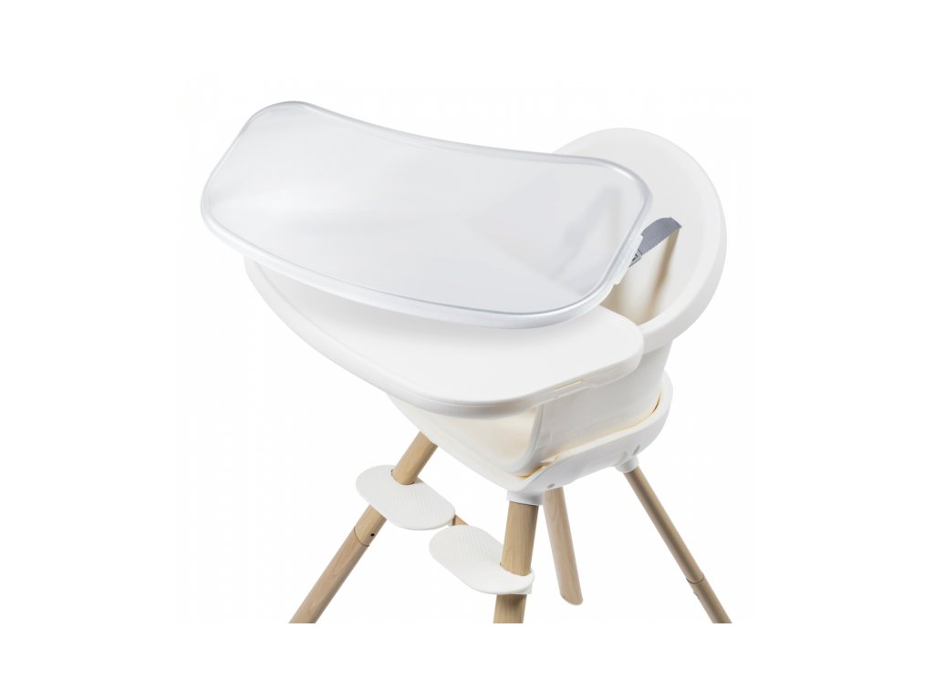 A kényelmes és biztonságos ülést a gyermek számára az állítható lábtartó és a biztonsági 5 pontos övek biztosítják. A szék szennyeződés esetén könnyen letörölhető. Az étkezőpultra helyezett levehető betét mosogatógépben mosható.