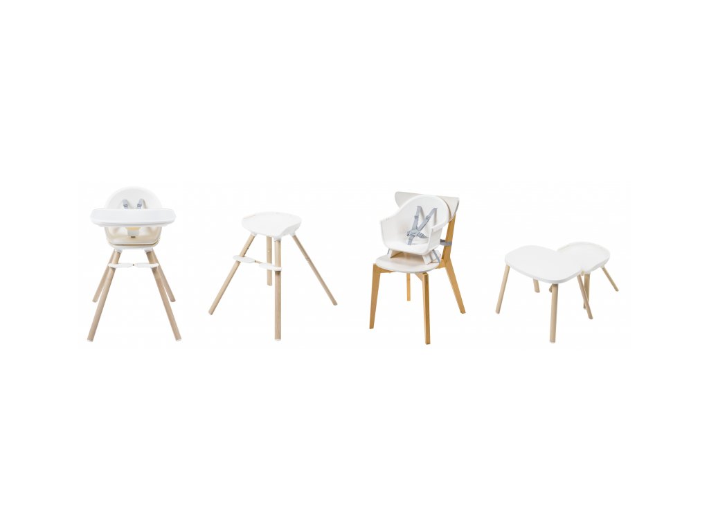 A moduláris kialakítás különböző felhasználási lehetőségeket kínál. A magas etetőszéket a legkisebb gyermekek számára étkezőpulttal vagy önállóan az asztalnál is használhatja. Az ülőrész külön is használható ülésmagasítóként egy klasszikus széken, az állítható lábak pedig lehetővé teszik a gyermek magasságához való igazítást. Az ülésmagasító étkezőpulttal vagy önállóan az asztalnál is használható. Idősebb korban a széket könnyen asztallá és székké alakíthatja.