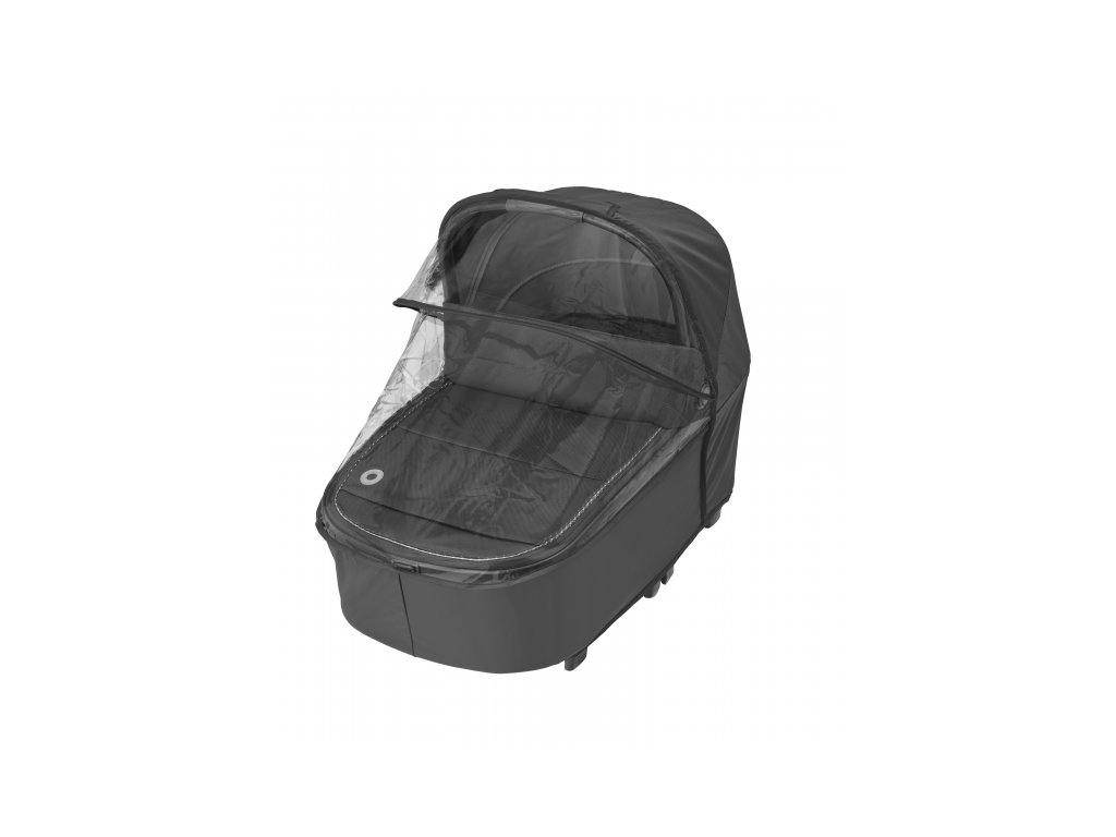 A mózeskosárhoz tartozik a napellenző, lábzsák, esővédő, matrac és szúnyogháló.