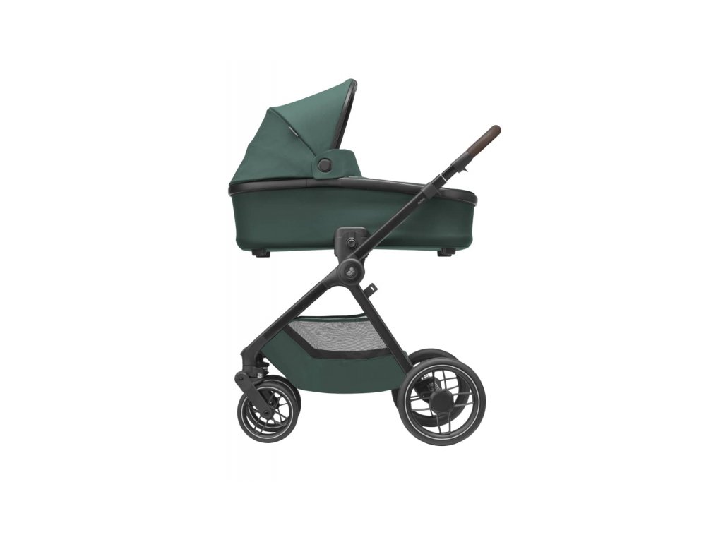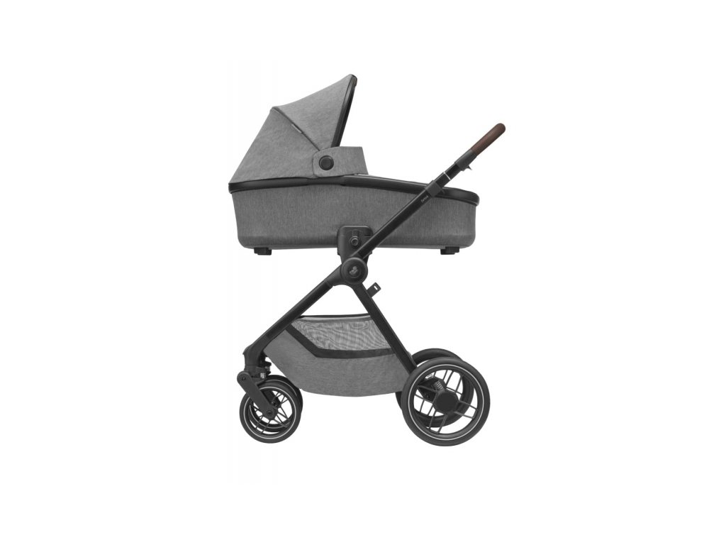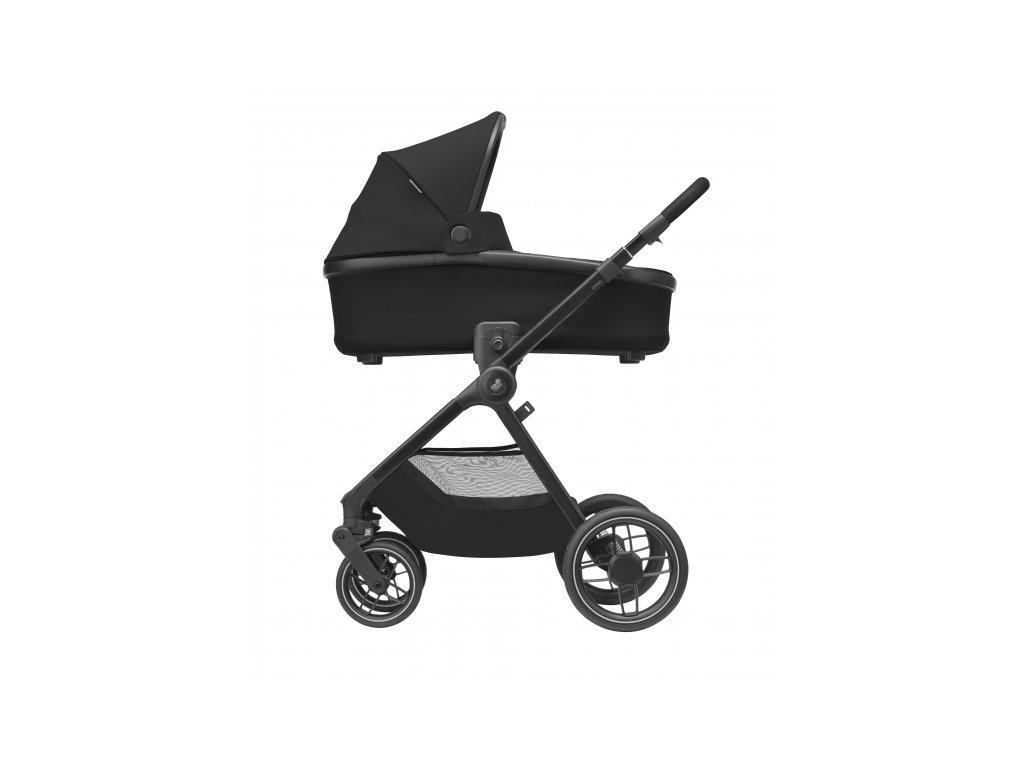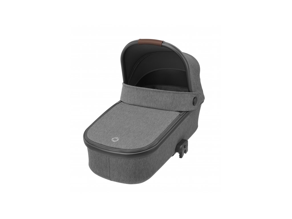 A babakocsihoz Maxi-Cosi adapterek tartoznak a mózeskosár rögzítéséhez. A mózeskosár csomagolása esővédőt és szúnyoghálót tartalmaz.
