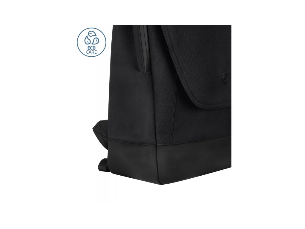 A hátizsák 100%-ban újrahasznosított Eco Care anyagokból készült, vízálló bevonattal a könnyű karbantartás érdekében.