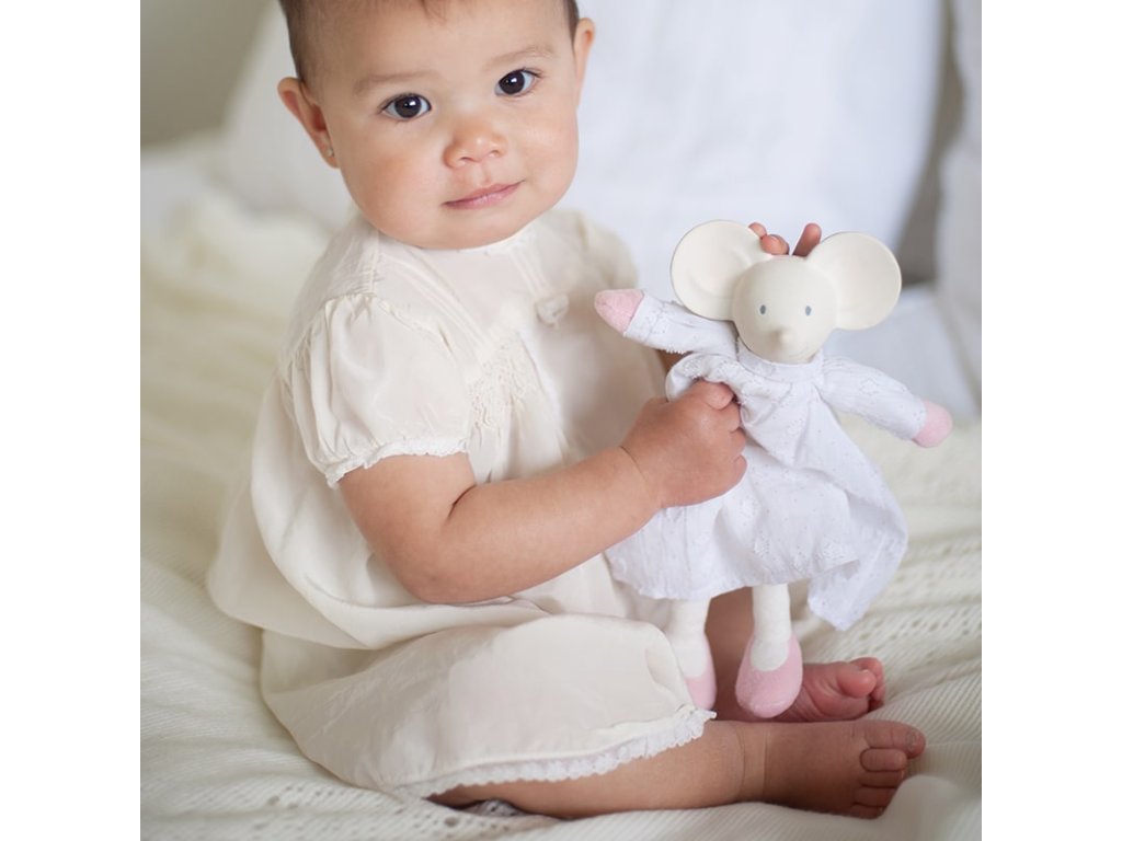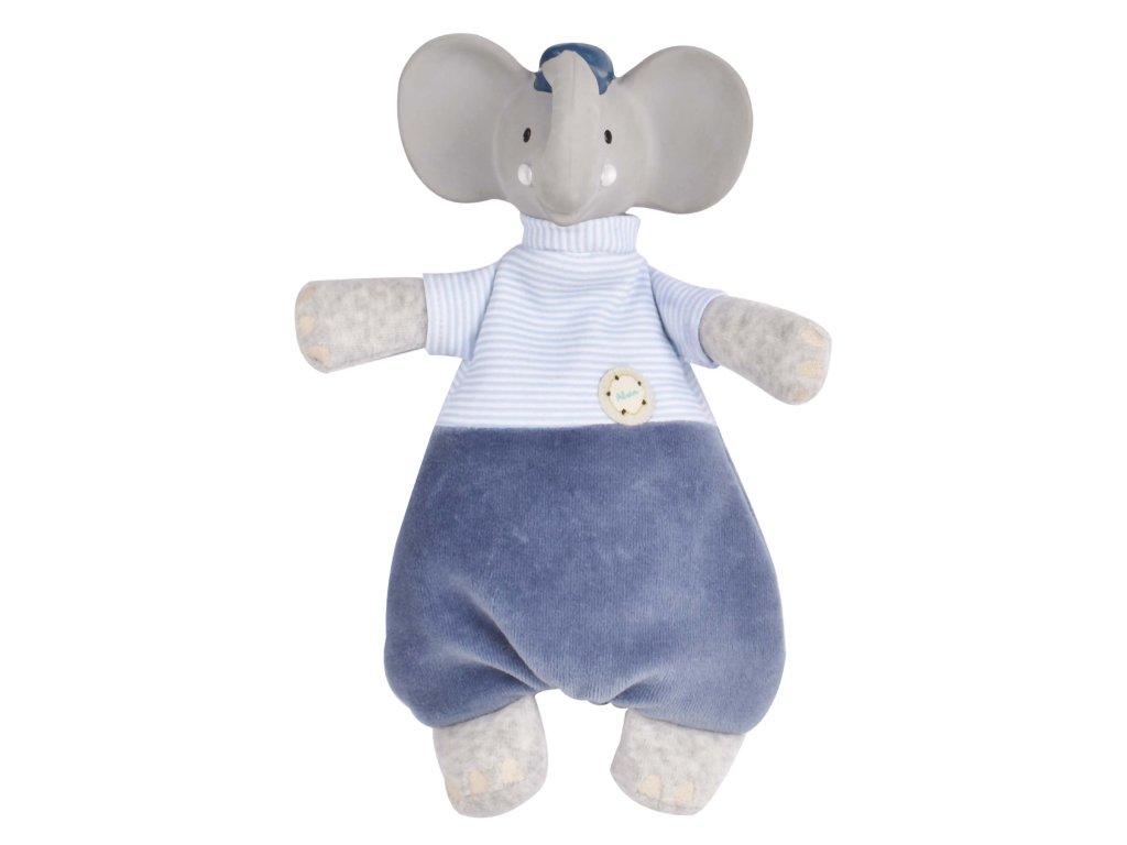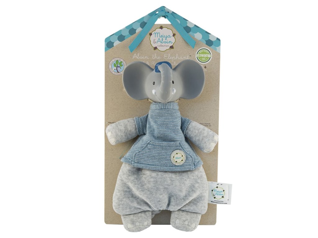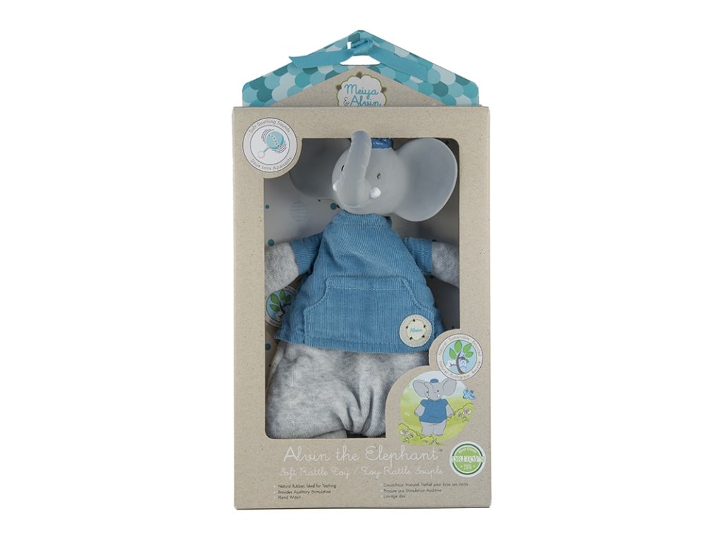 A Meiya&Alvin kollekcióból származó játék a puha, tanúsított pamutból készült kedvenc és a Hevea kaucsukfa természetes gumijából készült rágóka kombinációja. Kombinálja a kellemes, puha kedvenc előnyeit, a csörgő hangstimulációját és a gumi részt, amely ideális azoknak a gyermekeknek, akiknek éppen bújnak a fogaik. A természetes gumi egyedi illata és íze nagyon népszerű a gyermekek körében. A lágyabb és keményebb részek és kiemelkedések masszírozzák a gyermekek ínyét, enyhülést és megnyugvást hozva.A csörgő hangjával a gyermekek felfedezik érzékeiket és egyben stimulálják is azokat. A csörgő mozgatásával hangot létrehozva a gyermekek egyszerűen megtanulják a saját tevékenységük és az azt követő reakció alapvető leckéit. A kedvenc teste lapos formájú, töltelék nélkül Biztonságos újszülöttek és csecsemők számára is Hangstimulációt és érzelmi megnyugvást biztosít A természetes gumi egyedi illata és íze, amelyet a gyermekek nagyon szeretnek Ideális fogzáskor Tanúsított pamut és természetes gumi, amelyet kíméletesen nyertek a Hevea kaucsukfából Kézzel festett, biztonságos, növényi alapú festékekkel BPA-, PVC-, ftalát- és egyéb veszélyes anyagoktól mentes EU szabványok szerint tesztelve Újrahasznosított anyagból készült csomagolás, szója alapú festékekkel nyomtatva Minden Meiya&Alvin termék a környezet védelmével készül. Tudjuk, hogy a környezet tiszteletben tartása azt jelenti, hogy tiszteletben tartjuk az egész bolygónkat, amelyet így védünk a következő generációk számára.Magasság kb. 25 cm.Srí Lankán készült, fair trade körülmények között.