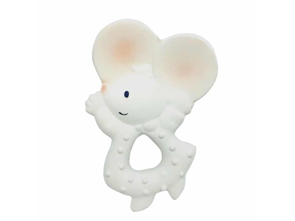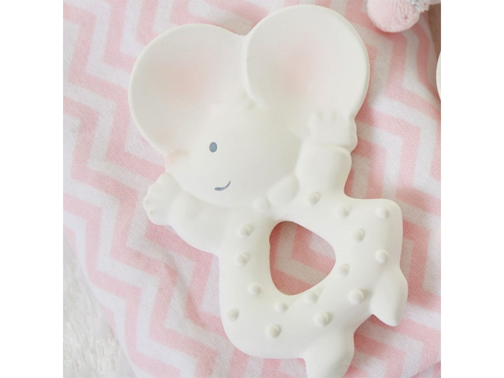 A Meiya&Alvin kollekcióba tartozó, természetes gumiból, Hevea kaucsukfából készült rágóka ideális azoknak a gyermekeknek, akiknek éppen bújnak a fogaik. A természetes gumi egyedi illata és íze nagyon népszerű a gyermekek körében. A rágóka lágyabb és keményebb részei, valamint a kiemelkedések finoman masszírozzák a gyermekek ínyét, enyhülést és megnyugvást hozva. Biztonságos újszülöttek és csecsemők számára A természetes gumit kíméletesen nyerik a Hevea kaucsukfából, a fenntarthatóságot szem előtt tartva A természetes gumi egyedi illata és íze, amely annyira népszerű a gyermekek körében Ideális fogzáskor Könnyen megfogható Kézzel festett, biztonságos növényi alapú festékekkel BPA-, PVC-, ftalát- és egyéb veszélyes anyagoktól mentes EU szabványok szerint tesztelve Újrahasznosított anyagból készült csomagolás szója alapú festékekkel nyomtatva Minden Meiya&Alvin termék a környezet védelmével készül. Tudjuk, hogy a környezet tiszteletben tartása azt jelenti, hogy tiszteletben tartjuk az egész bolygónkat, amelyet így védünk a következő generációk számára.Magassága kb. 11 cm.Srí Lankán készült, fair trade körülmények között.