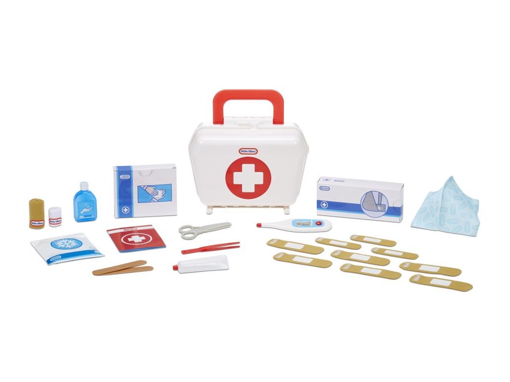 A Little Tikes Elsősegély készlet egy interaktív játék, amelyet úgy terveztek, hogy valósághűen nézzen ki, így a gyerekek úgy tehetnek, mintha elsősegélyt nyújtanának. Jó szórakozást a géz és a kötszerek felhelyezésével a vágásokra és horzsolásokra.Tegyél úgy, mintha valakinek megmérnéd a hőmérsékletét egy interaktív hőmérővel.Tekerd be a ficamokat egy kötszerrel, és rögzítsd tépőzárral.A tartozékok tárolására használd a tokot.25 orvosi kiegészítőt tartalmaz, mint például arcmaszk, kézfertőtlenítő, vállpánt, kenőcsös tubus, elsősegély-brosúra, csipesz, olló, hideg borogatás, toroknyelv-lapocska és még sok más!
