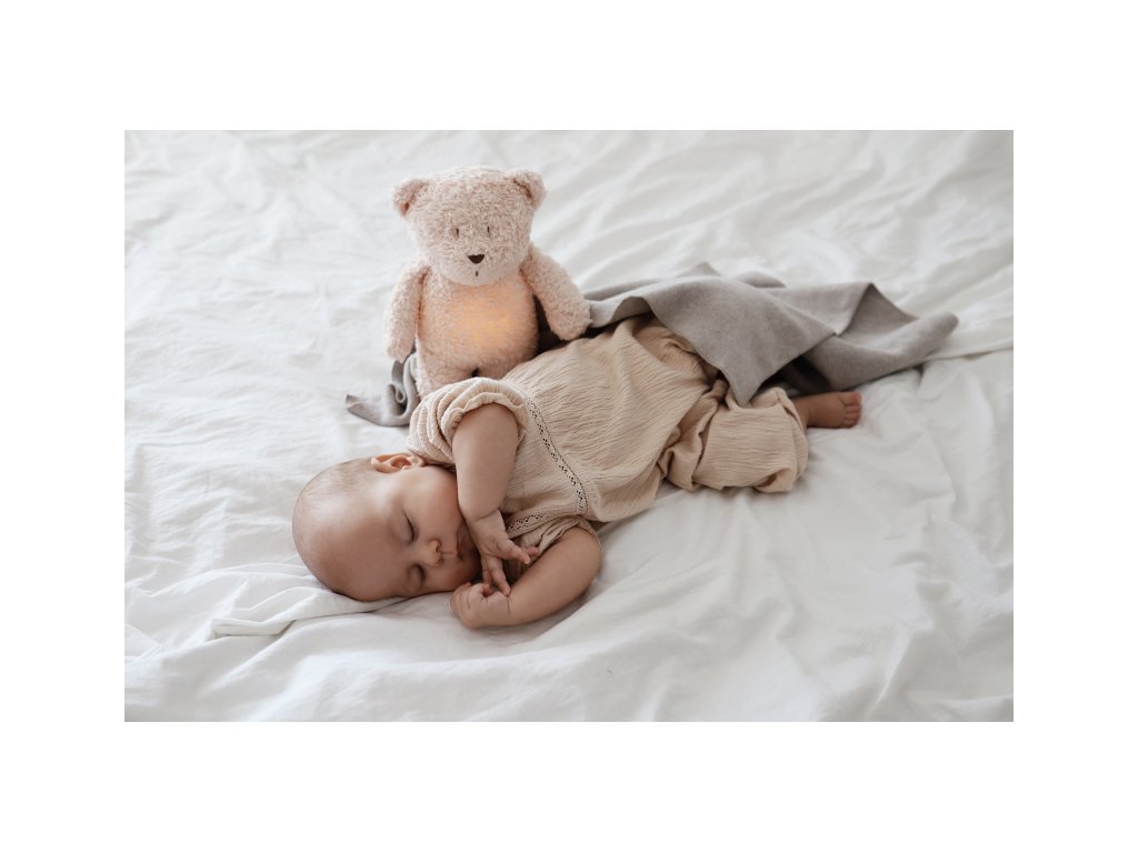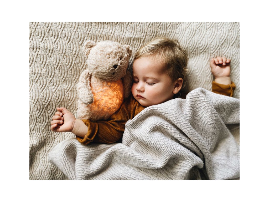A medve hasa világít, és éjszakai fényként szolgál, hétféle világítási színnel. A lágy fény segít a gyermeknek biztonságban érezni magát a kiságyban. A fény hangok nélkül is bekapcsolható. Bekapcsolt Shake funkció esetén a játék megrázásával kapcsolhatja be a fényt. A medve világítás közben nem melegszik fel, és teljesen biztonságos a gyermek számára.
